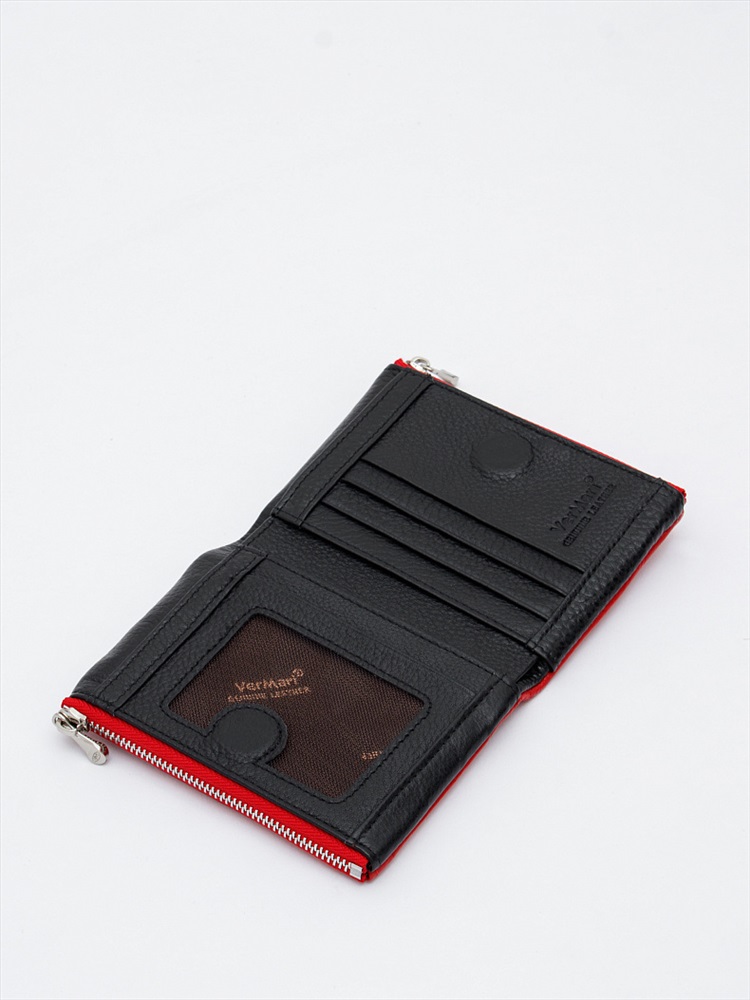 Высота (см): 9 Бренд: Vermari Материал: Натуральная кожа Кошелек складывается пополам, закрывается на магниты. Внутри: шесть отделов для карт, один отдел для купюр. Снаружи: два кармана на молниях. Серебристая фурнитура. Комментарии к товару