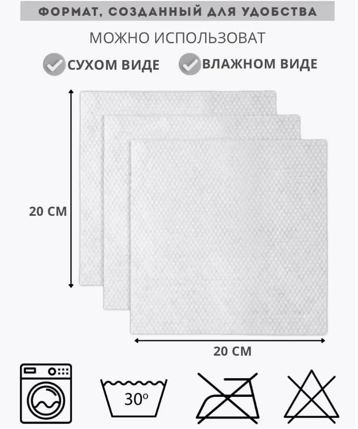 Вес уп.(гр) ~: 114 Косметические полотенца супер комфорт 20х20см, 40шт Универсальные много разовые косметические салфетки, на основе целлюлозы и хлопка с широким спектром применения. Салфетки универсальные одноразовые полотенца из нетканого материала.