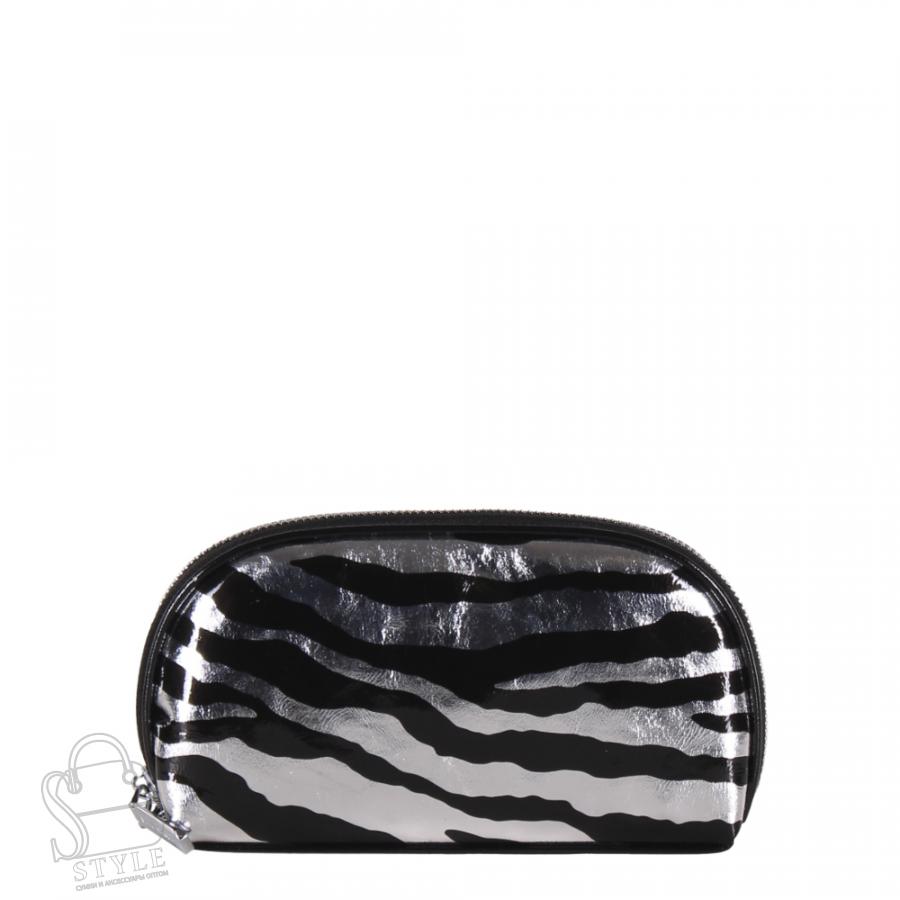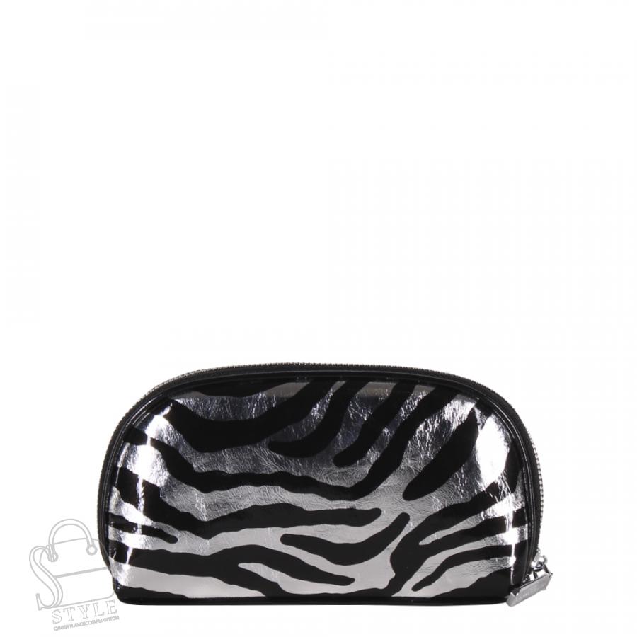 Артикул: 7100-21 zebra black silver Материал: Натуральная кожа Цвет: Комбинированный Ширина (см): 4 Длина (см): 18 Высота (см): 12 Вес (г): 150 Косметичка выполнена из натуральной кожи. Дополнена серебристой фурнитурой. Данная модель закрывается на молнию. Каркас полужесткий. Носится за петельку. Внутри: подкладочная ткань. Снаружи: отдел на молнии. Комментарии к товару
