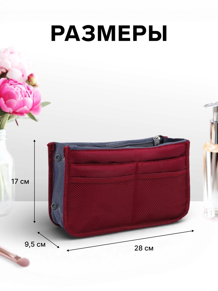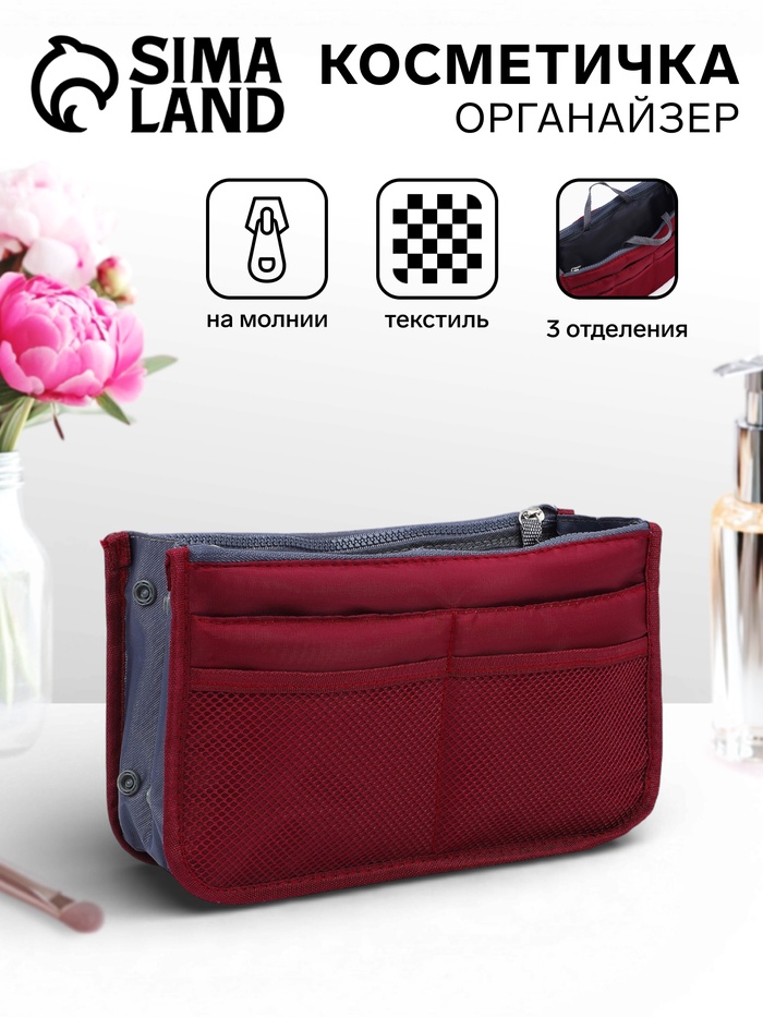 Косметичка-органайзер на молниях, цвет бордовый