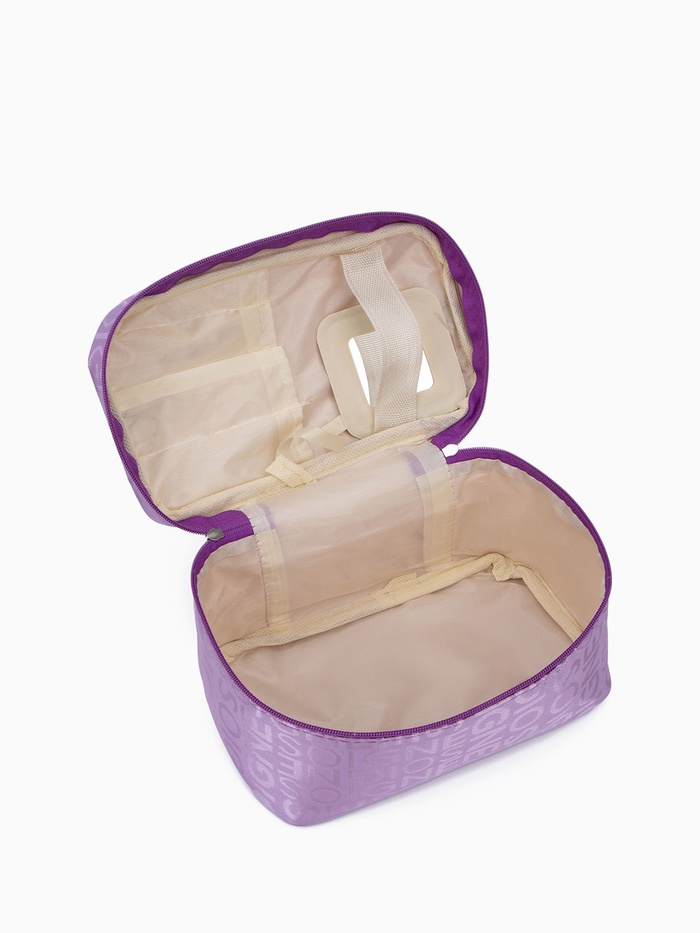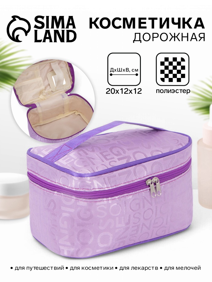 Эта сиреневая косметичка с буквами — стильный и практичный органайзер для всего самого необходимого. Она легко поместит любимые помады, тени и кисти, сохраняя порядок в сумочке или в дорожной сумке. Мягкая подкладка внутри бережно защищает хрупкие аксессуары, а прочная молния надёжно закрывает отделение.