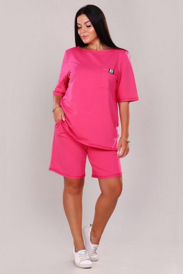 Женский костюм состоит из футболки и шорт, выполнен из мягкого и приятного на ощупь материала футер 2-х нитка. В состав входят 70% хлопка, 24% полиэстера и 6% эластана, что обеспечивает комфорт и хорошую посадку. Футболка украшена нагрудным карманом со стильной нашивкой Brooklyn 83, что добавляет оригинальности и лаконичности образу. Шорты имеют удобные карманы, что делает этот комплект практичным и подходящим для повседневной носки, активного отдыха или просто для домашнего уюта. Такой костюм отлично подойдет для удобного и стильного образа в теплую погоду. * Допускается незначительное отличие оттенка.
