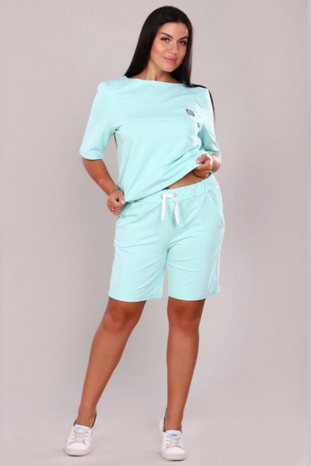 Женский костюм состоит из футболки и шорт, выполнен из мягкого и приятного на ощупь материала футер 2-х нитка. В состав входят 70% хлопка, 24% полиэстера и 6% эластана, что обеспечивает комфорт и хорошую посадку. Футболка украшена нагрудным карманом со стильной нашивкой Brooklyn 83, что добавляет оригинальности и лаконичности образу. Шорты имеют удобные карманы, что делает этот комплект практичным и подходящим для повседневной носки, активного отдыха или просто для домашнего уюта. Такой костюм отлично подойдет для удобного и стильного образа в теплую погоду. * Допускается незначительное отличие оттенка.