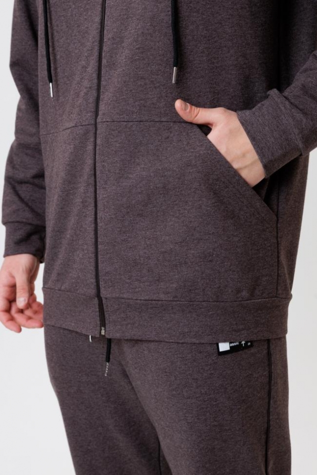 Кофта на молнии с капюшоном и глубокими карманами. На рукавах и по низу изделия (а также на брюках) предусмотрены манжеты, они дарят ощущение уюта, защищают от холода и ветра. Брюки с карманами. Пояс на широкой эластичной резинке со шнурком, который легко можно затянуть/ослабить и носить так, как удобно.