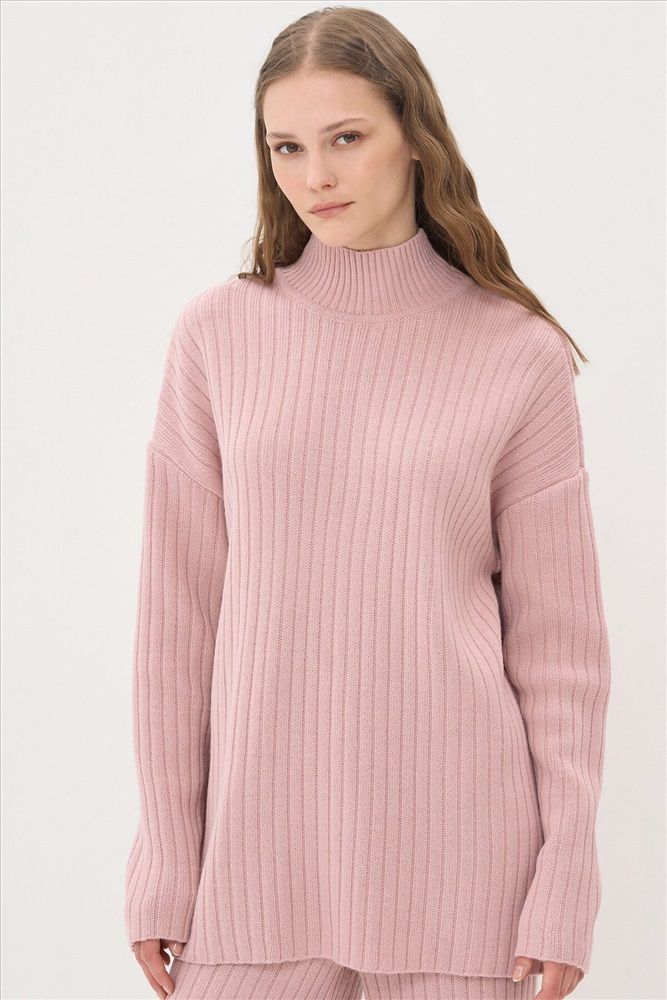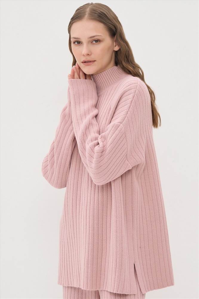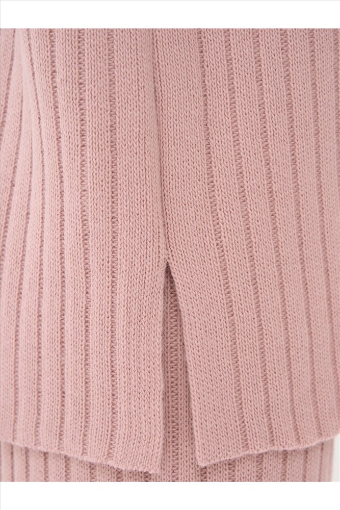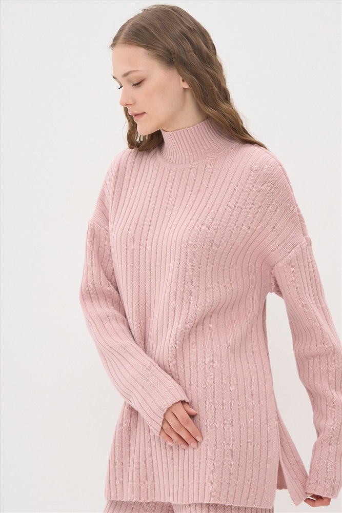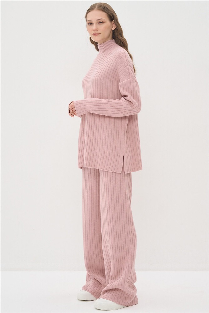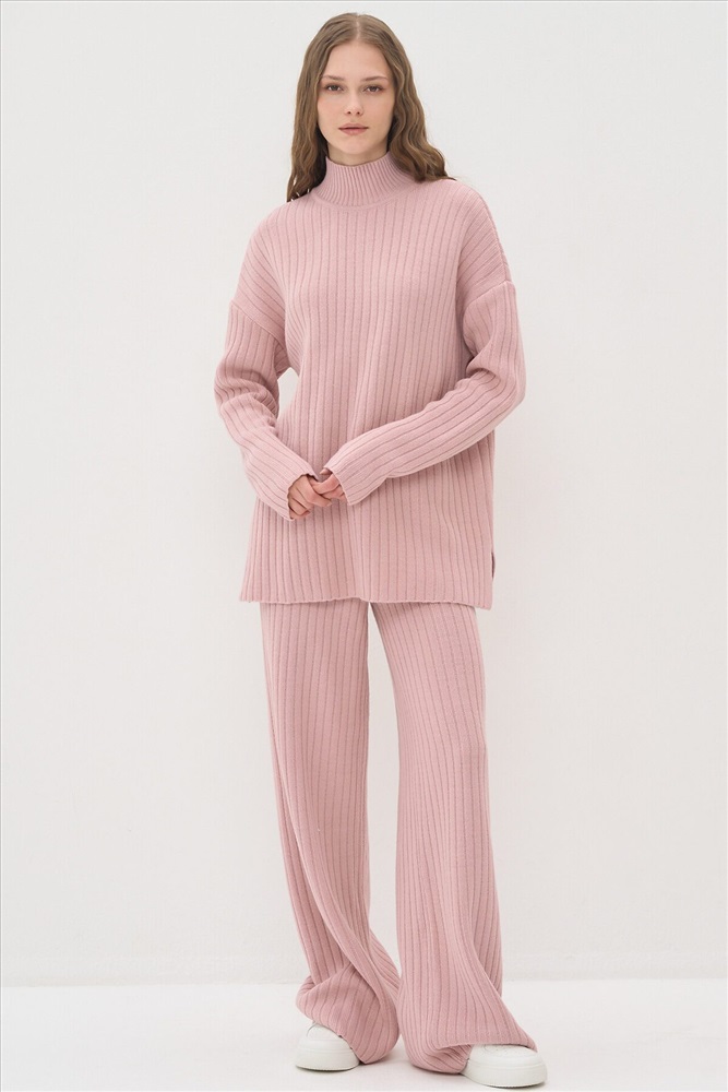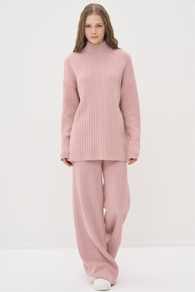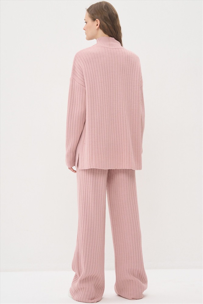 Женский трикотажный костюм, состоящий из джемпера и брюк.