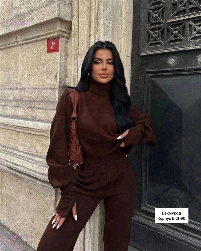 В: размер,идеальная посадка,отличного качества люкс Потрясающий двойка этого сезона Тренд 2025года стильная двоечка Укороченный свитер(с отверстием под пальчик)и брючки Размеры:42,44,46,48 Ткань:трикотаж кашемировый в рубчик