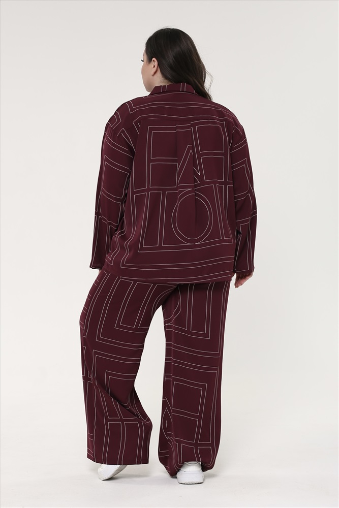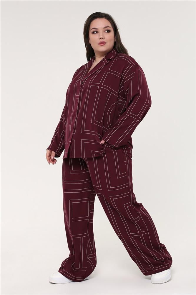 Костюм брючный пижамный "геометрия" винный