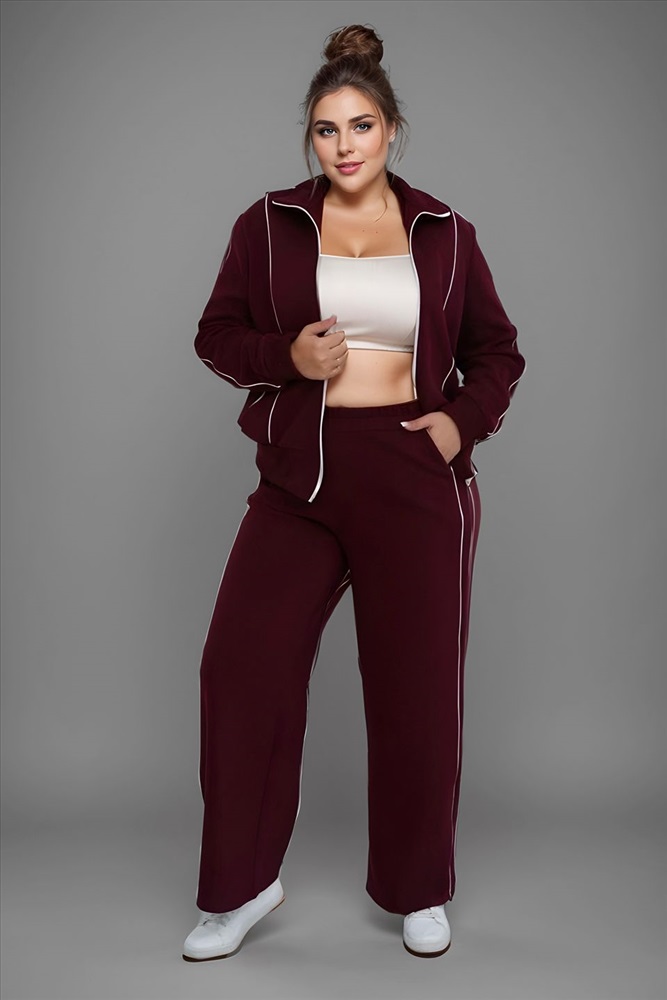 Костюм спортивный с белыми линиями бордовый