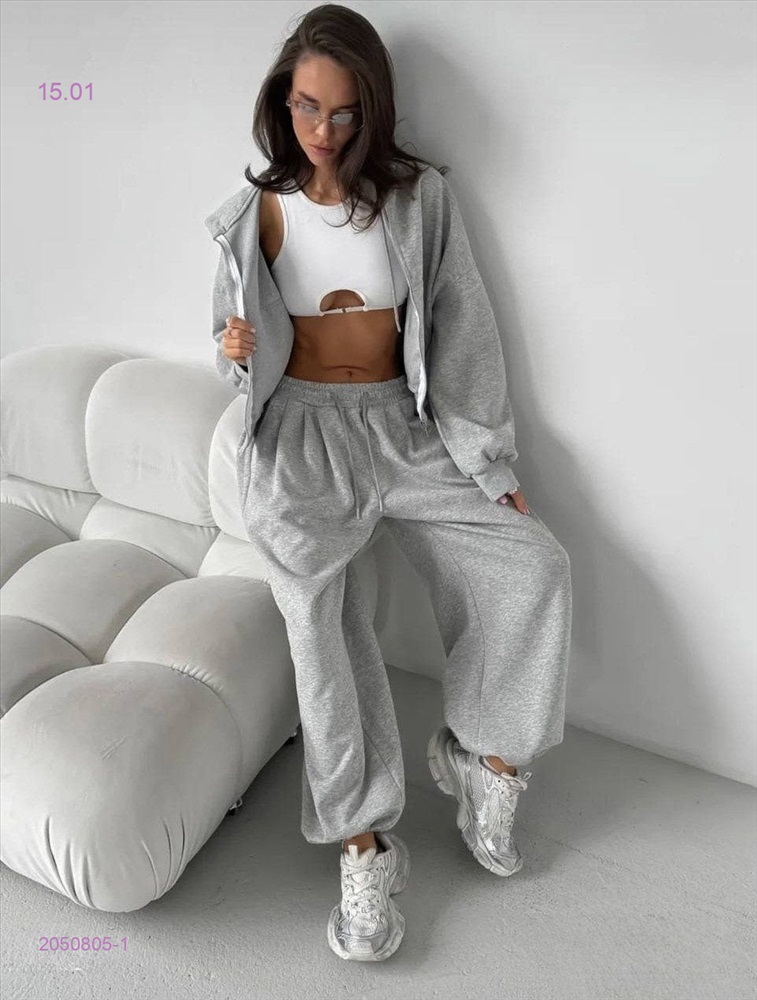 Размеры42: 44 46 48Трендовый двойка свободного крояШтаны низу регулируются на кулисеТкань:ДвухниткаПошив и качество отличное