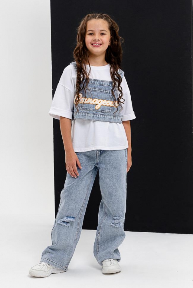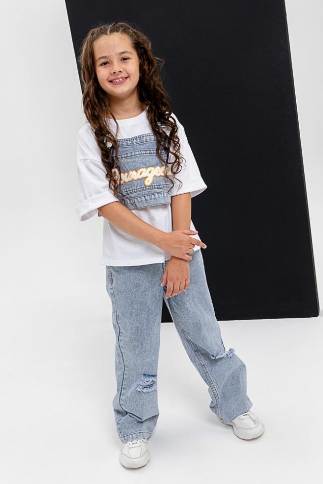 Расцветки: Белый/джинс Ткань: Кулирка, Джинс Состав: 100% хлопок; 98% полиэфир; 2% хлопок Размеры: 32, 34, 36, 38, 40, 42