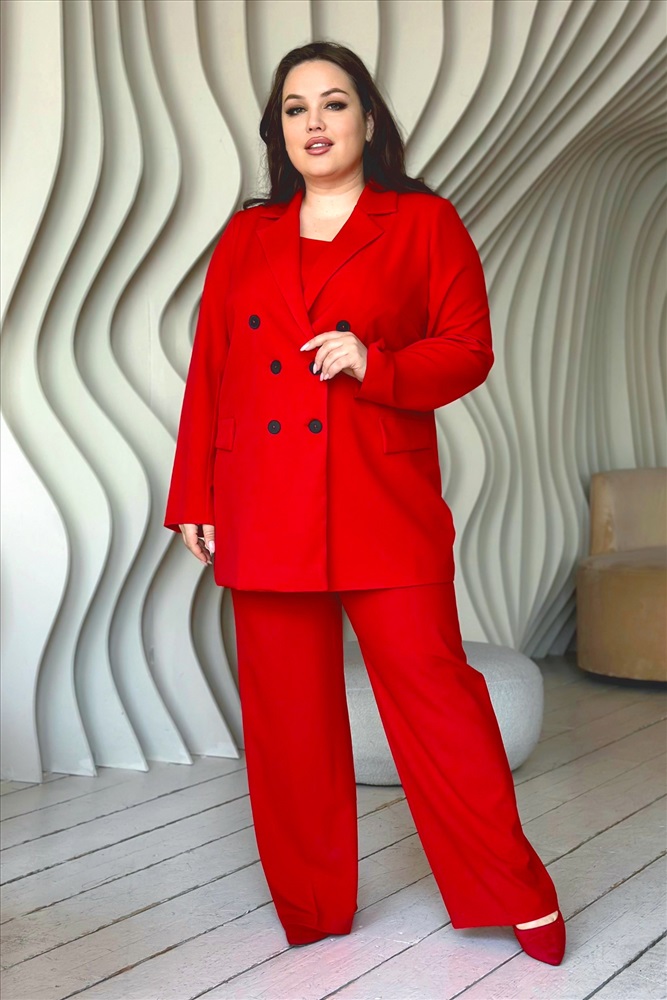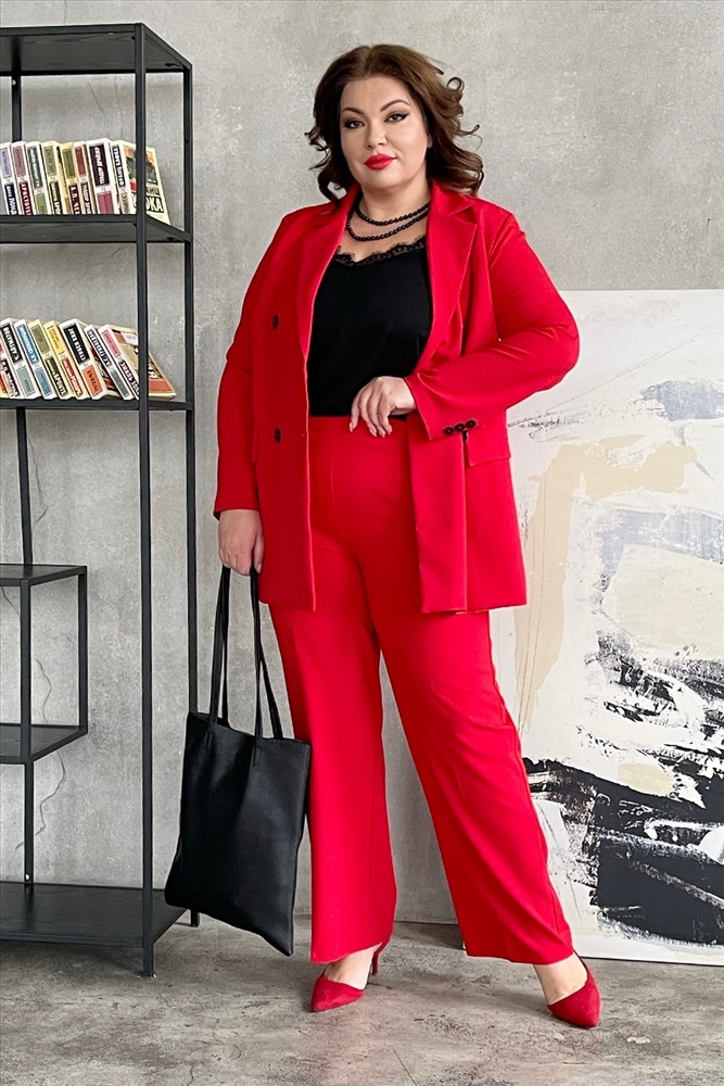 Костюм двубортный с классическим воротом красный