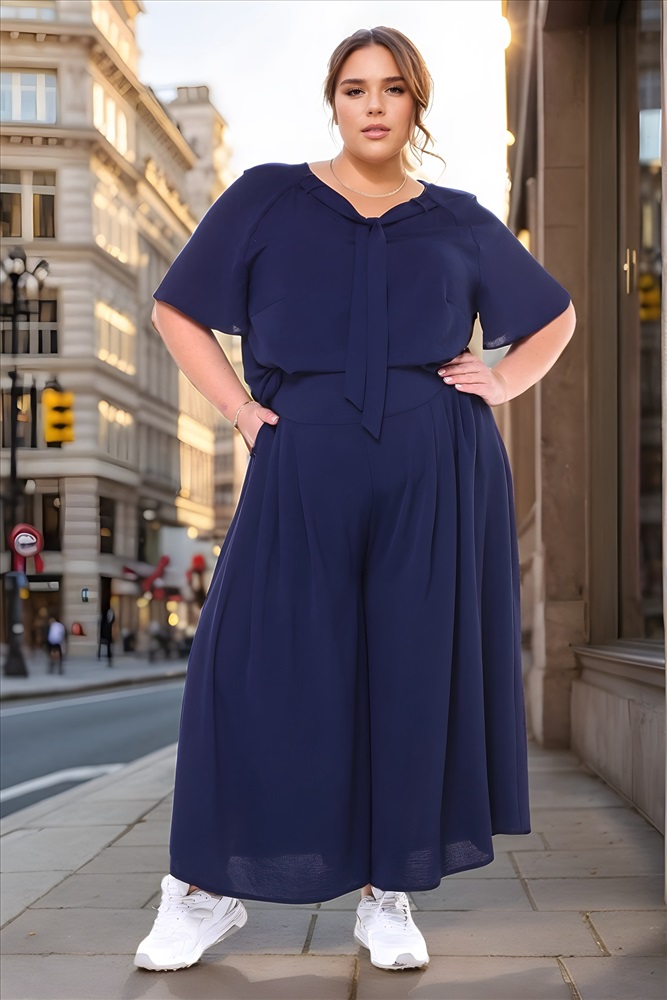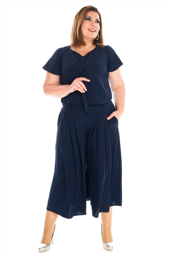 Костюм брючный с завязкой на груди с кюлотами темно-синий