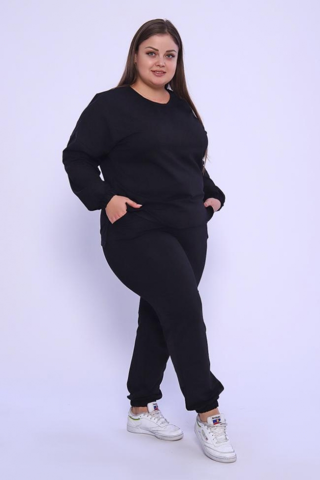 Повседневный наряд для шикарных женщин, толстовка с длинным рукавом на резинке, разрезы по бокам, брюки с карманами, резинка внизу, пояс обработан на поясной машине.