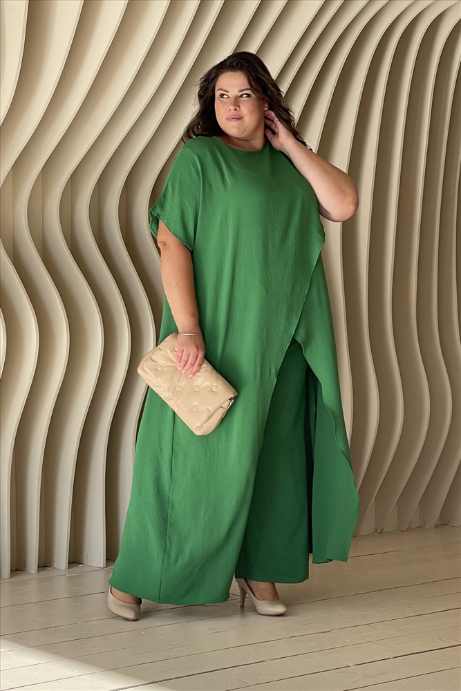 Костюм брючный "ласточка" палаццо с длинным верхом с запАхом зеленый