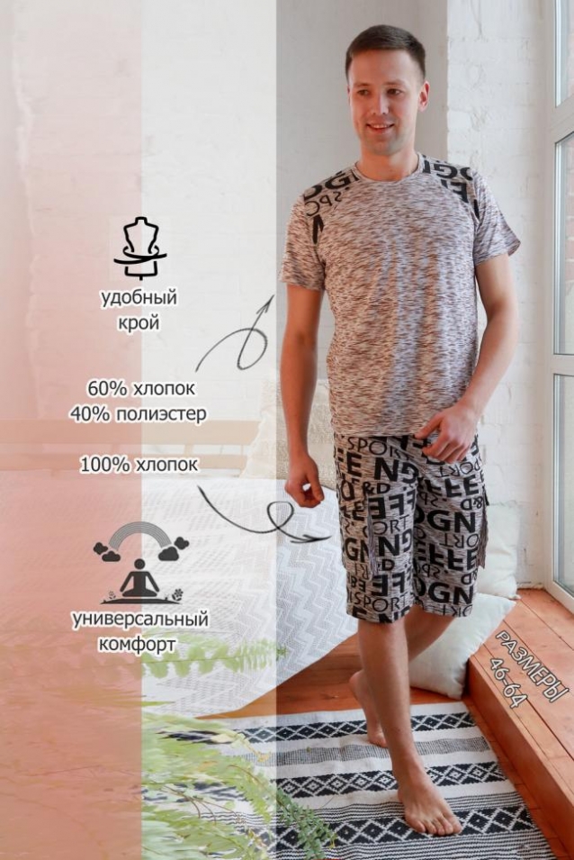 Ткань: Кулирка Состав: Верх: 60% х/б, 40% пэ; низ: 100% хлопок Размеры: 46, 48, 50, 52, 54, 56, 58, 60