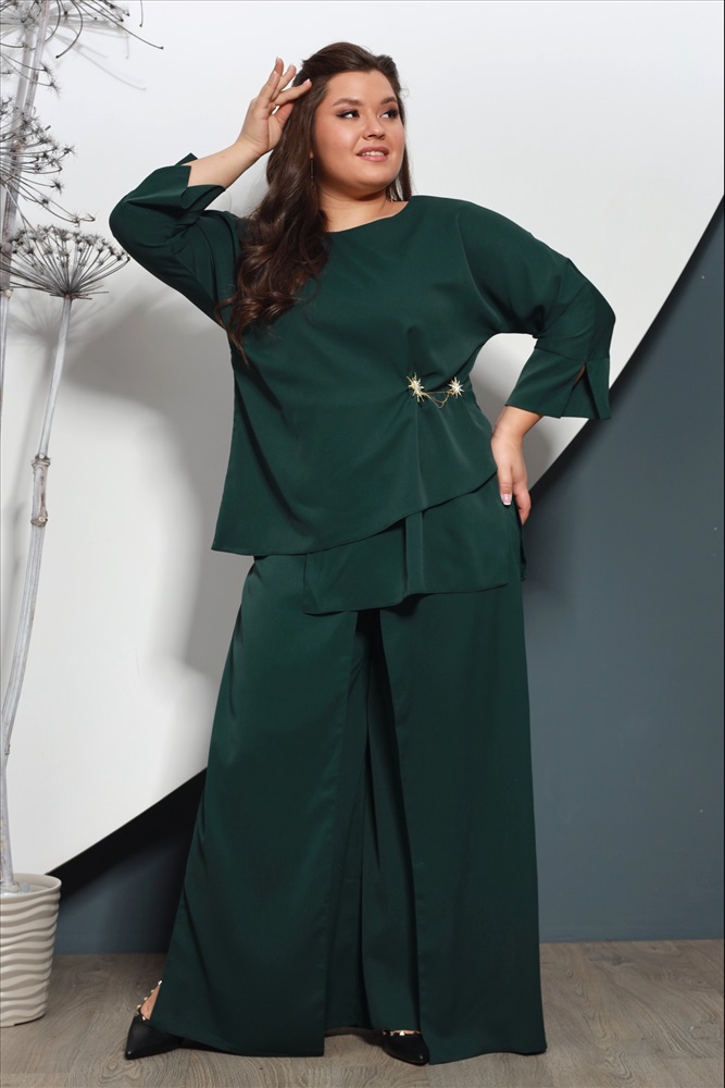 Костюм с асимметричным верхом со складками на брюках изумруд