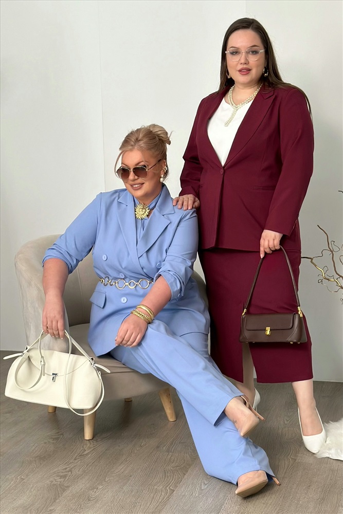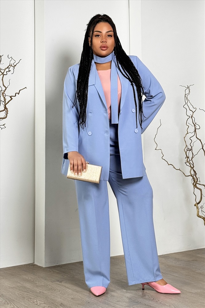 Костюм двубортный высокий рост с пуговками в тон голубой