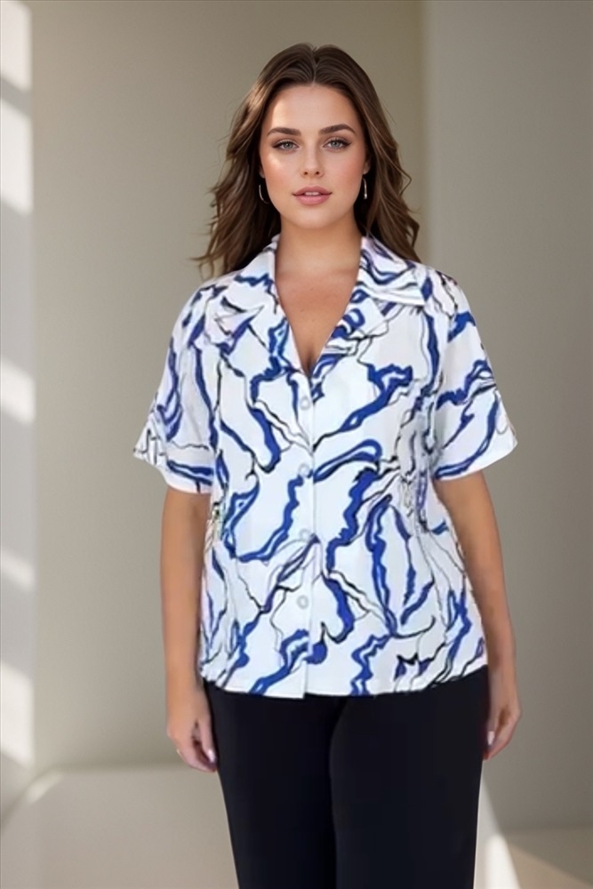 Костюм брючный с рубашкой с короткими рукавами синие разводы