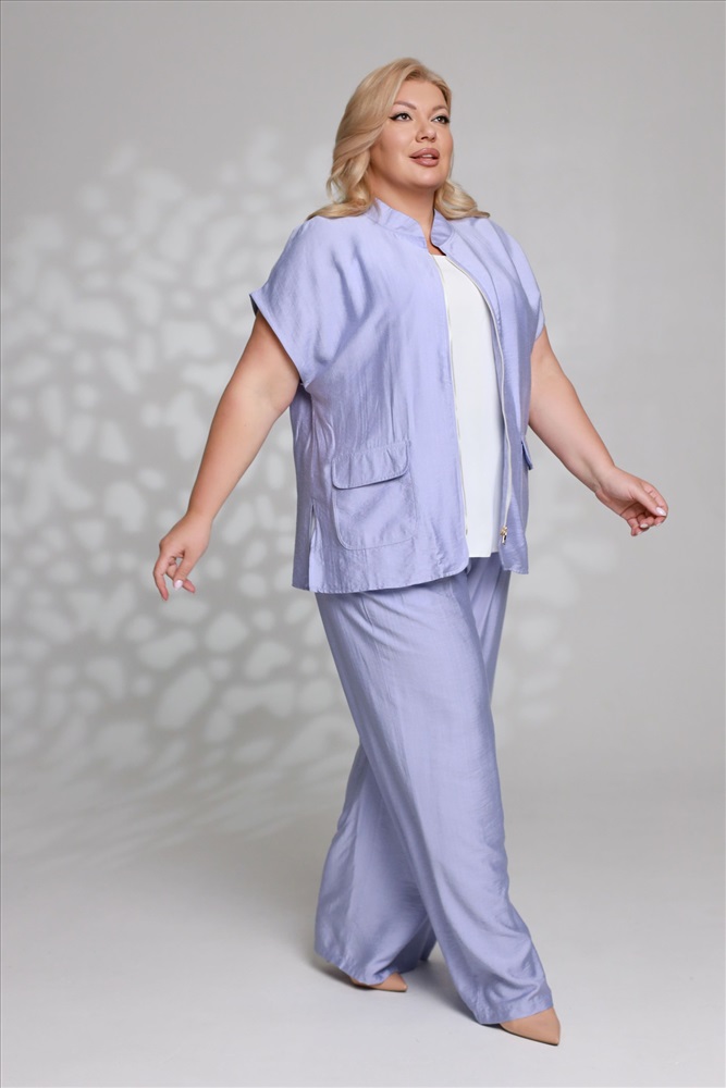 Костюм брючный с верхом на молнии с хлястиками лаванда