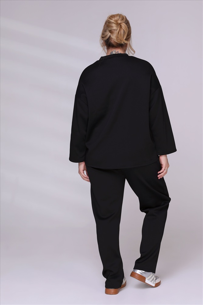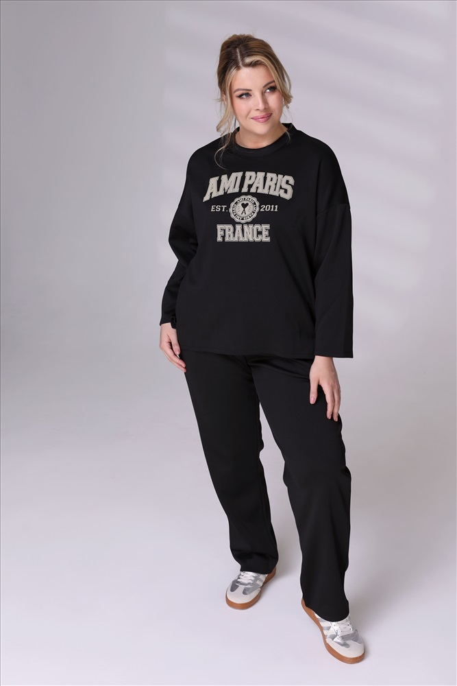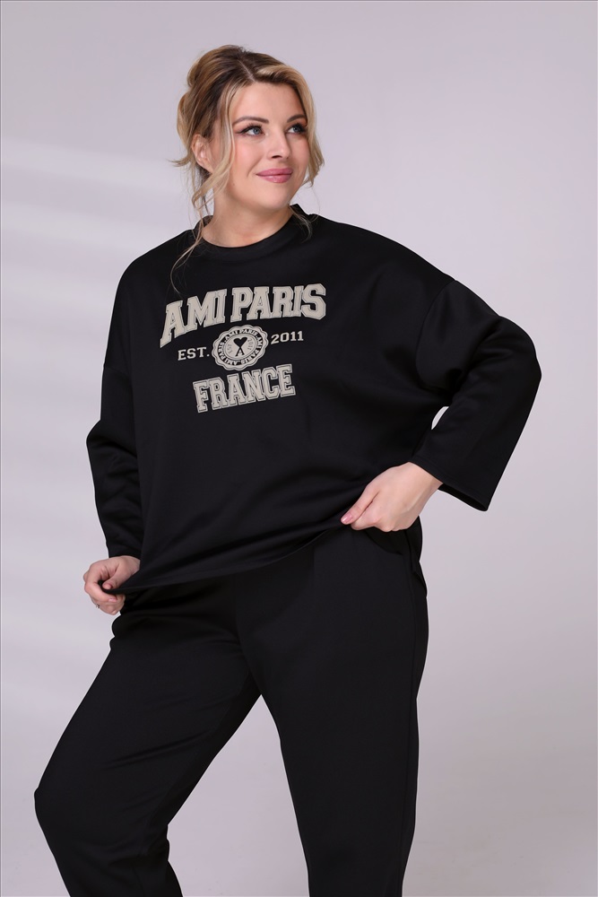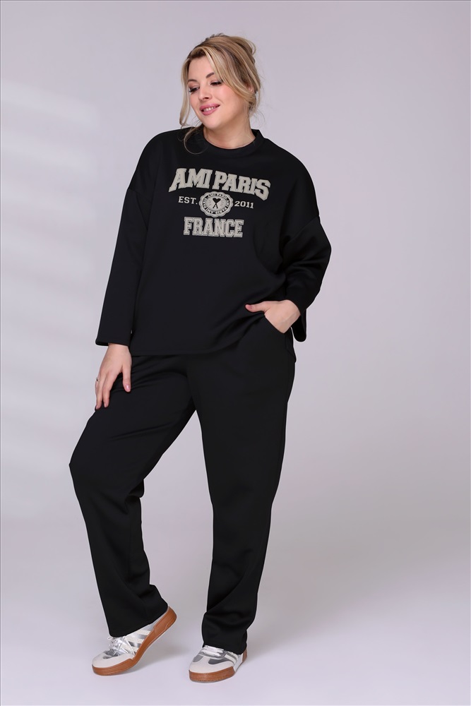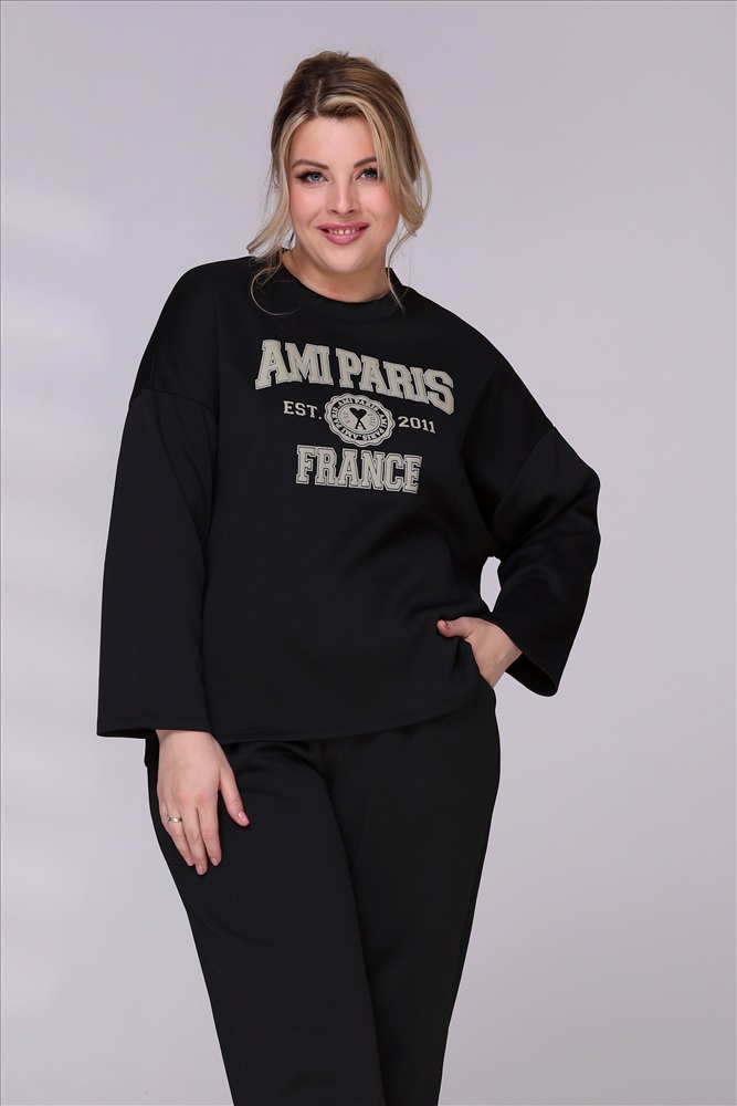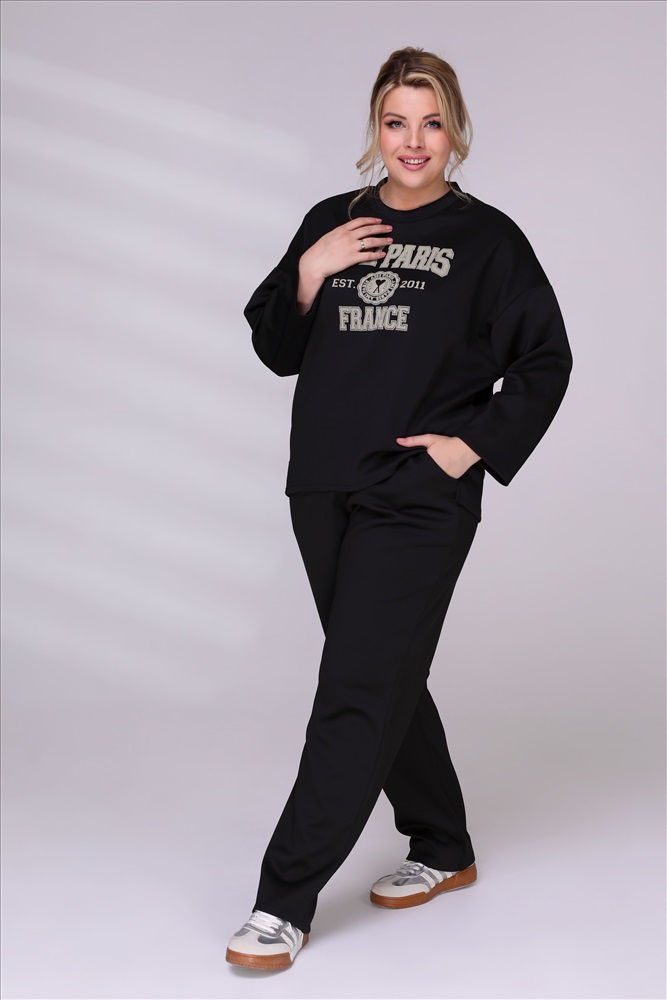 Спортивный костюм из высококачественного трикотажа состоит из лонгслива и брюк. Удобный лонгслив имеет круглый вырез с узким кантом. Приспущенные рукава полной длины.Небольшие разрезы по бокам обеспечивают оптимальную посадку по фигуре. Контрастные надписи на груди добавляют динамичности и освежают образ. Брюки отлично сидят за счет комфортной высокой посадки и эластичной резинки на поясе. По бокам глубокие карманы. Удобный костюм подходит для долгих прогулок, активного отдыха и путешествий. Свободный крой не будет сковывать ваши движения, обеспечит комфорт и свободу. Составляющие костюма можно носить по отдельности, сочетая с другими вещами из вашего гардероба.