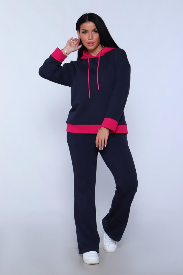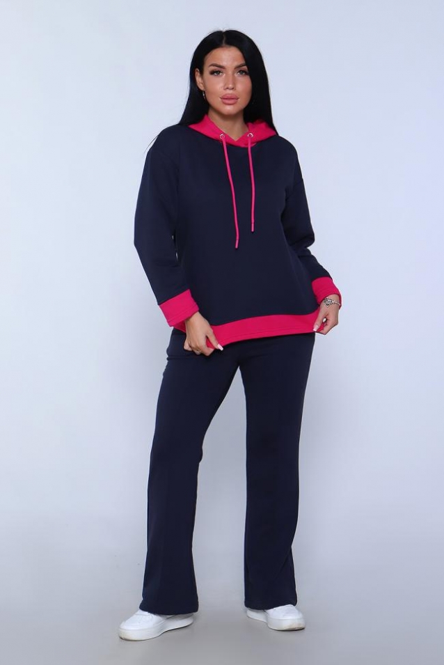 Элегантный женский костюм полуприлегающего силуэта, состоящий из худи и брюк сшит из трикотажного полотна премиум качества - футер 3-х нитка петля без начеса. Высокое качество ткани обеспечит комфорт и удобство на долгое время. Хлопковая изнаночная сторона изделия дарит комфортные ощущения при ношении костюма. Брюки силуэта клеш с широким поясом с декоративной отсрочкой и с отстроченной стрелкой на передней половине брюк, что вытягивает силуэт и визуально делает ноги длиннее, что добавляет женственности образу. В боковых швах брюк расположены карманы с отрезным бочком. Худи прямое, свободное с длинными рукавами. Низ рукава и низ худи отделаны декоративными манжетами контрастного цвета. Вырез горловины округлый, с двойным капюшоном контрастного цвета в тон манжет. Объём капюшона регулируется декоративным шнурком. Сочетание комфорта и стиля делает этот костюм модным и удобным для каждой девушки и женщины. Идеальный комплект обеспечивает удобную посадку на любую фигуру, позволяет свободно двигаться, гулять, отдыхать и заниматься спортом, благодаря тому, что костюм не сковывает движения. Базовые расцветки, прекрасно сочетающиеся цвета основной ткани и ткани - компаньона позволят подобрать тот костюм, который идеально соответствует вашему вкусу и предпочтениям. Стильный костюм подойдёт для любого времени года, на любую погоду. Удобный костюм подойдет как для домашнего, так и уличного ношения. Для беременных и молодых мам! Идеальный подарок прекрасным женщинам!