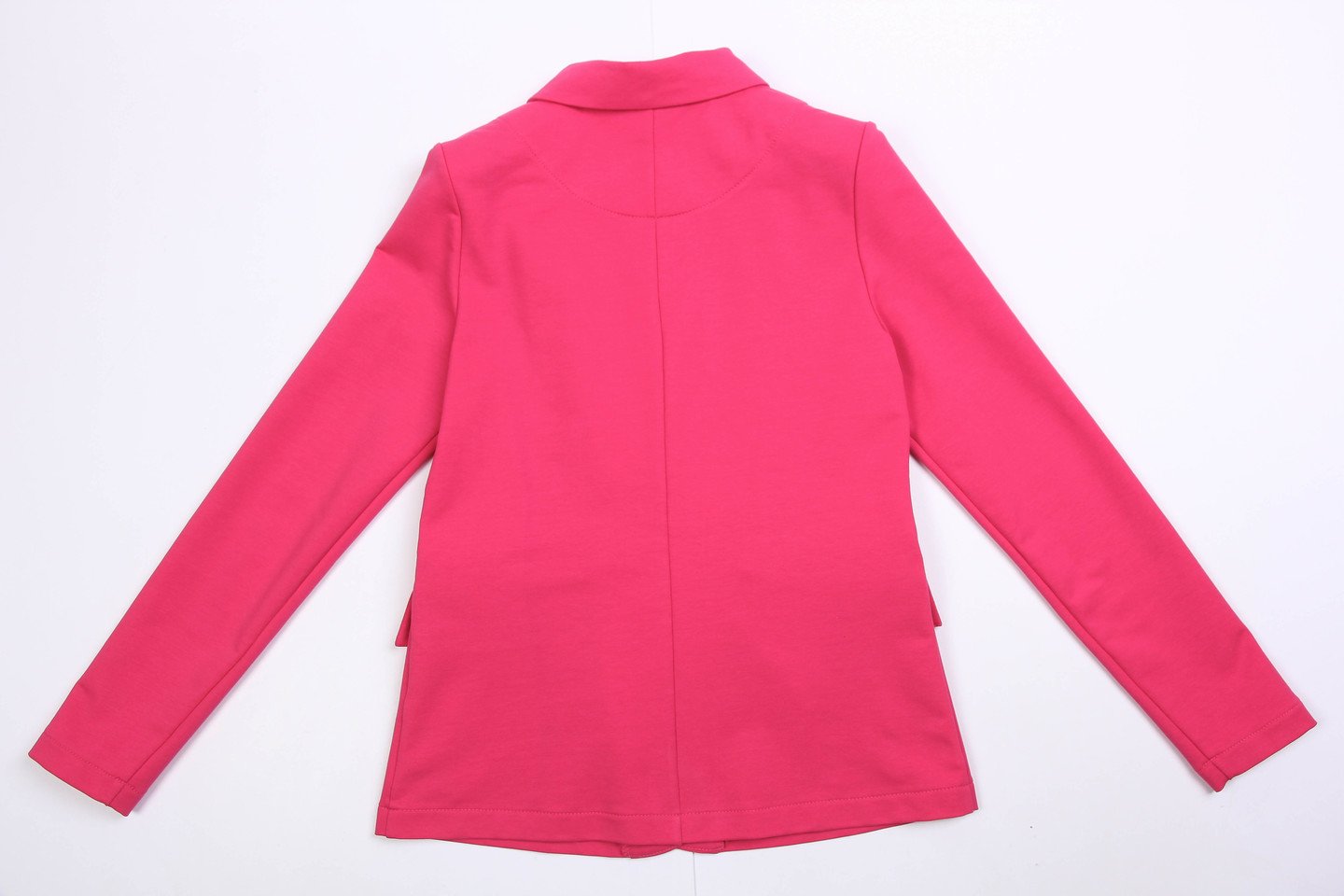 Классический костюм всегда был в моде, такие костюмы подходят всем, независимо от фигуры. Их можно носить с блузками, рубашками, для того, чтобы создать строгий образ. Современные женщины готовы носить модный костюм с брюками по любому поводу и это правильно. Более того, женский брючный костюм входит в топ вещей, без которых представить себе актуальный женский гардероб в сезоне 2024 будет немыслимо. Жакет с воротником английского типа, свободного объема, полуприлегающего силуэта. Застежка на пуговицы, элегантные карманы в рамкум с клапаном. Брюки среднего объема, стрелка застрочена, пояс с резинкой. Посадка брюк – высокая, на талии. В очередной раз пришла в моду палитра сочных оттенков – фуксия, зеленая мята, изумруд – наш выбор. Модель представлена из трикотажа, что предоставляет максимум комфорта в носке. Состав трикотажа: 75% хлопок, 20% полиэстер, 5% спандекс.