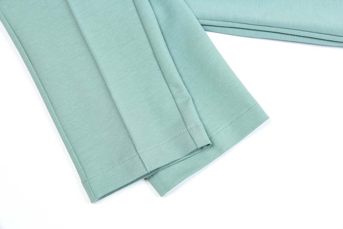 Классический костюм всегда был в моде, такие костюмы подходят всем, независимо от фигуры. Их можно носить с блузками, рубашками, для того, чтобы создать строгий образ. Современные женщины готовы носить модный костюм с брюками по любому поводу и это правильно. Более того, женский брючный костюм входит в топ вещей, без которых представить себе актуальный женский гардероб в сезоне 2024 будет немыслимо. Жакет с воротником английского типа, свободного объема, полуприлегающего силуэта. Застежка на пуговицы, элегантные карманы в рамкум с клапаном. Брюки среднего объема, стрелка застрочена, пояс с резинкой. Посадка брюк – высокая, на талии. В очередной раз пришла в моду палитра сочных оттенков – фуксия, зеленая мята, изумруд – наш выбор. Модель представлена из трикотажа, что предоставляет максимум комфорта в носке. Состав трикотажа: 75% хлопок, 20% полиэстер, 5% спандекс.