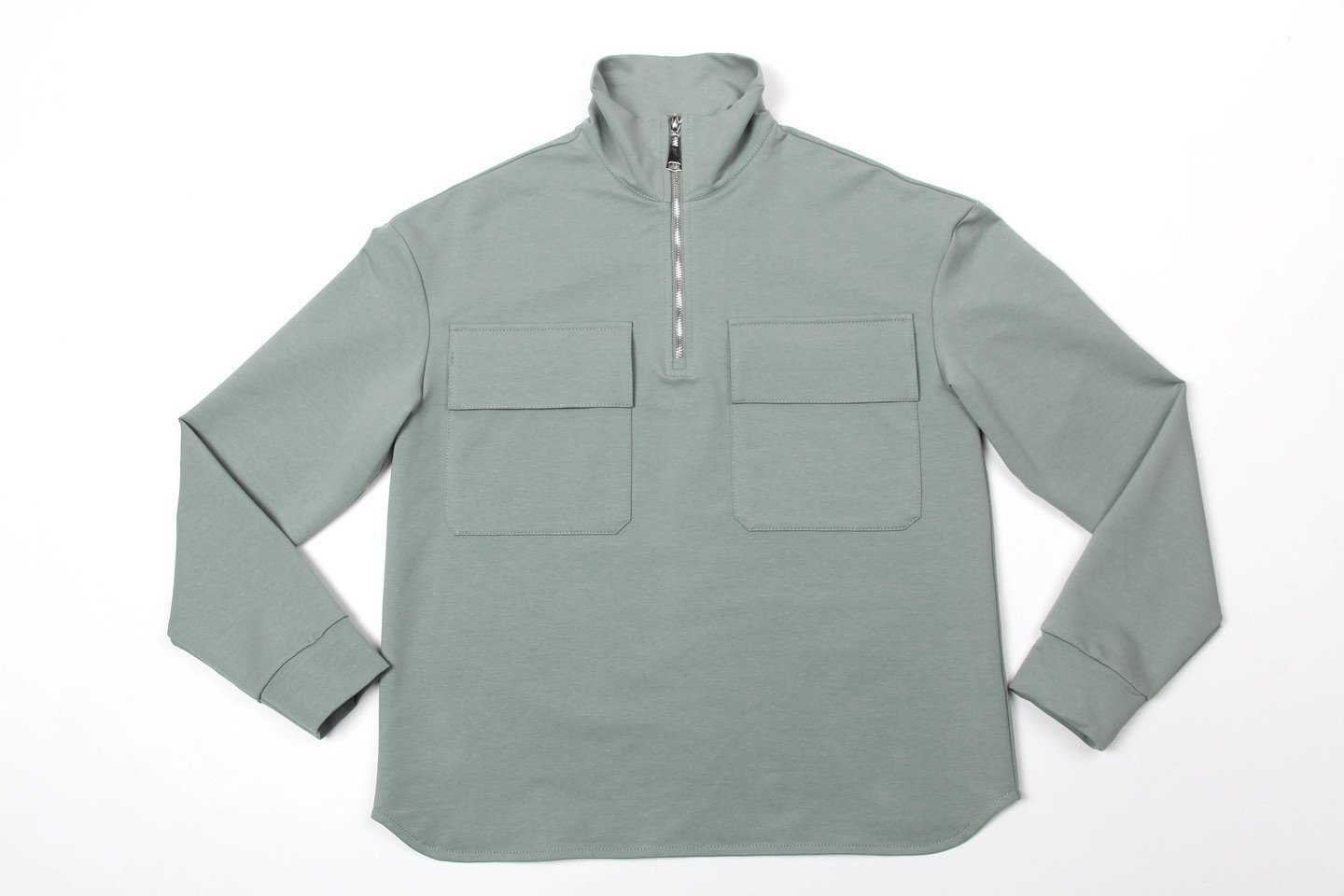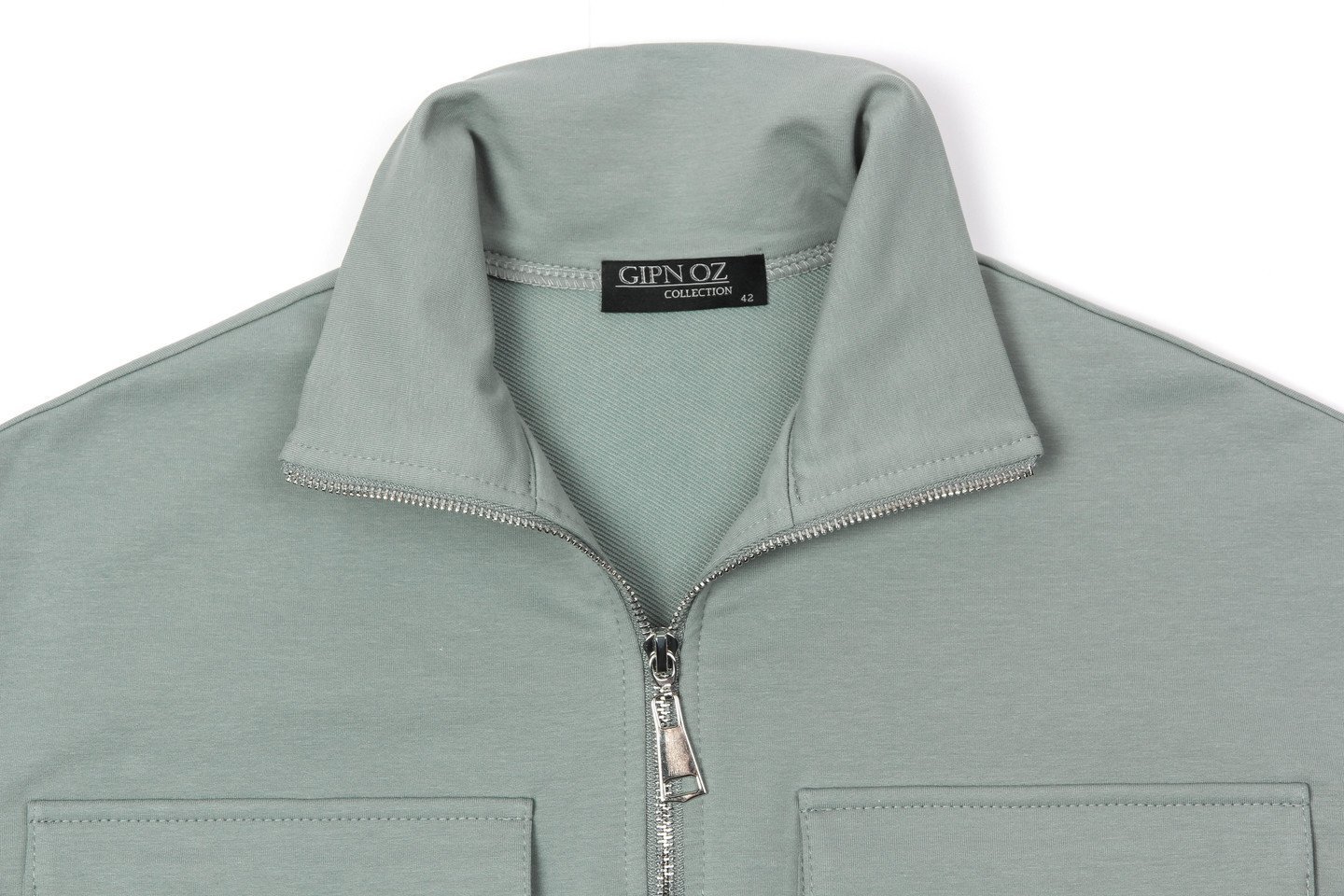 Cтиль спорт шик утвердился в списке самых популярных трендов и с тех пор не покидает пьедестал. Женский костюм в стиле спорт шик сочетает в себе привлекательность, выразительность и высокий уровень комфорта. Локаничный, свободный свитшот с металлической молнией до уровня груди и воротником стойкой. На груди два накладных кармана с клапанами. Низ слегка выгнутой формы. Брюки среднего объёма, без лишних деталей, пояс на резинке, по низу манжеты. Состав трикотажа: 75% хлопок, 20% полиэстер, 5% спандекс.