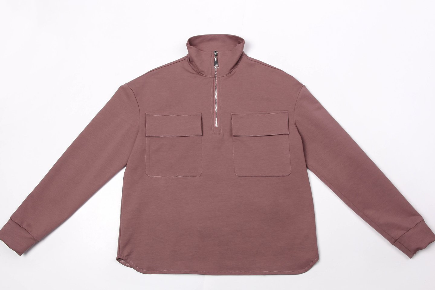 Cтиль спорт шик утвердился в списке самых популярных трендов и с тех пор не покидает пьедестал. Женский костюм в стиле спорт шик сочетает в себе привлекательность, выразительность и высокий уровень комфорта. Локаничный, свободный свитшот с металлической молнией до уровня груди и воротником стойкой. На груди два накладных кармана с клапанами. Низ слегка выгнутой формы. Брюки среднего объёма, без лишних деталей, пояс на резинке, по низу манжеты. Состав трикотажа: 75% хлопок, 20% полиэстер, 5% спандекс.