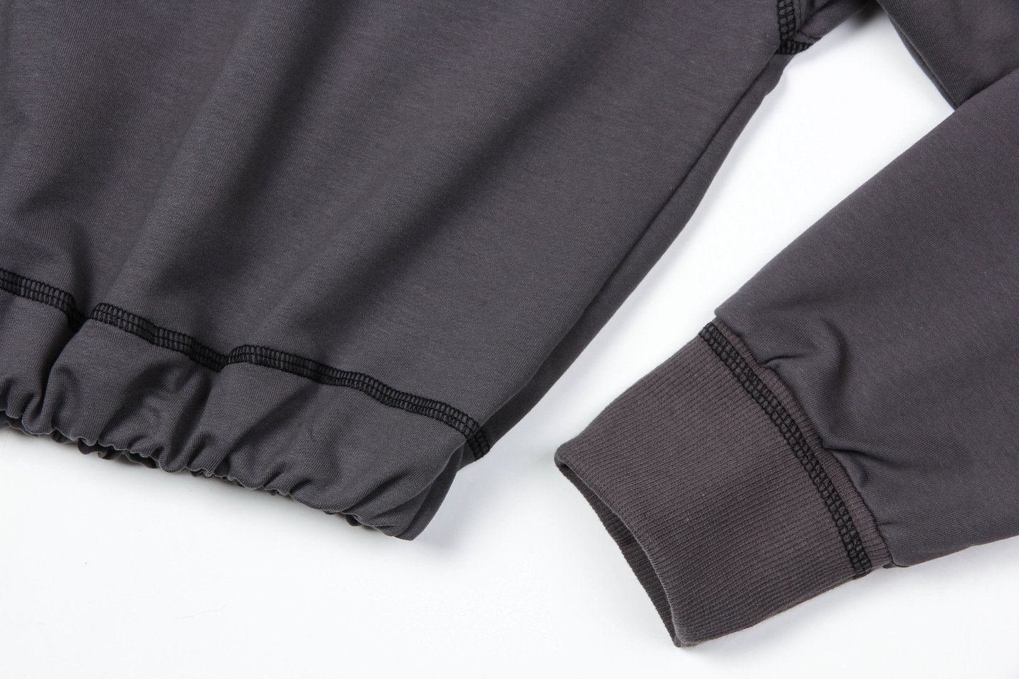 Интерпретации стилей и направлений в грядущем сезоне предложены образами, где спортивные костюмы могут выглядеть довольно стильно, представляя модели в стиле спорт-шик. Просторную балахонистую одежду обожают носить и взрослые, и подростки. Да и вообще, оверсайз отлично отражает молодежный стиль жизни «я на чиле». Короткая толстовка с резинкой по линии талии позволяет приоткрыть живот. Образы с этой деталью выглядят запредельно дерзко. Воротник стойка на молнии. Широкие брюки с вертикальными линиями и лампасами - этот вид отделки давно закрепился на штанах у модниц. Посадка по талии – высокая, по линии низа имеется резинка с фиксатором, что позволяет прямые брюки превращать в «бананы». Дизайн и покрой модели подчеркнут контрастными черными строчками. Лаконичный фирменный логотип и черная молния подчеркивают стильность данной модели. Состав трикотажа: 75% хлопок, 20% полиэстер, 5% спандекс.