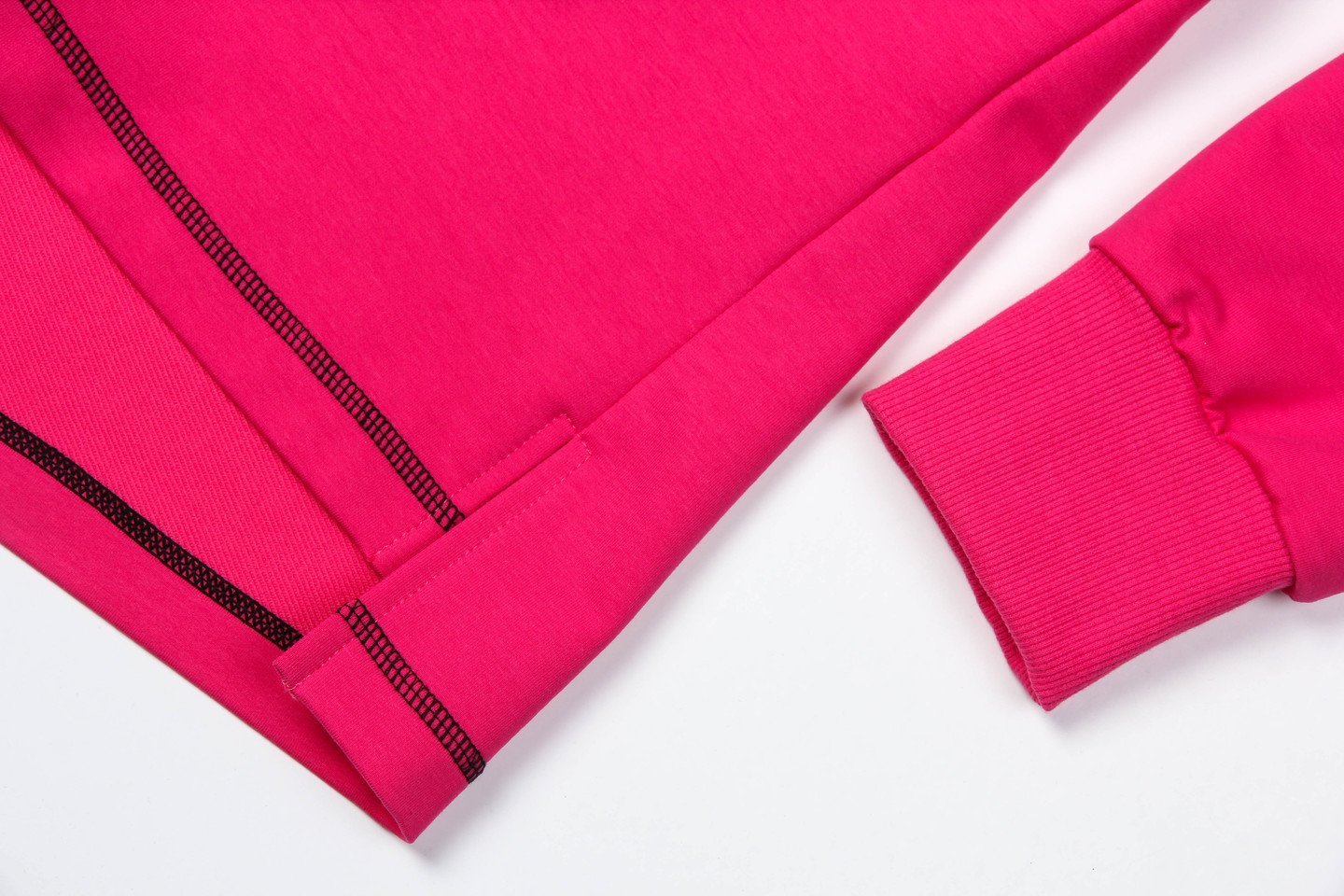 С появлением в продаже костюмов из футера все девушки и женщины стали гоняться за этим нарядом. Причиной тому служат необыкновенный комфорт и удобство одежды, в которую облачаются не только для занятий, но и для размеренных прогулок, встреч с друзьями и даже походов на работу или учёбу. Помимо всех перечисленных достоинств, футер обладает долговечностью. Он не только надолго сохраняет свой цвет, но и не вытягивается. Даже после десятков стирок костюм будет выглядеть как новый. Наш костюм составлен из толстовки и брюк. Толстовка свободного объема, прямого силуэта, комфортной длины – отлично подойдет на любую фигуру. Воротник - стойка на молнии. Брюки классического кроя, пояс с резинкой, низ брюк может загибаться на манжет. Контрастные черные строчки делают модель очень стильной и современной. Костюм может быть полностью в одном цвете и с черными брюками, что делает его очень универсальным. Состав трикотажа: 75% хлопок, 20% полиэстер, 5% спандекс.