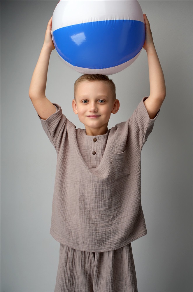 Детский костюм для мальчика – идеальный выбор для активного лета. Комплект представлен в бежевом цвете и позволит вашему ребенку наслаждаться солнечными днями с комфортом и стилем.