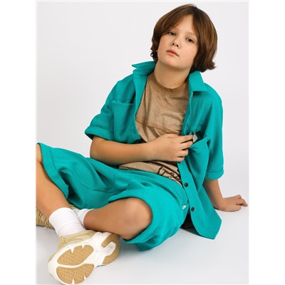 Производитель: Соль&Перец; Цвет: бирюзовый; Бренд: Соль&Перец; Пол: Детский; Производитель: Киргизия; Сезон: лето; Категория: Костюм летний; Тип рукава: Короткие; Вид застежки: Пуговицы; Тип карманов: С отрезным бочком; Комплектация: 1 рубашка, 1 шорты; Уход за вещью: Стирать при температуре 30С; Состав материала: 80% хлопок, 20% полиэстер