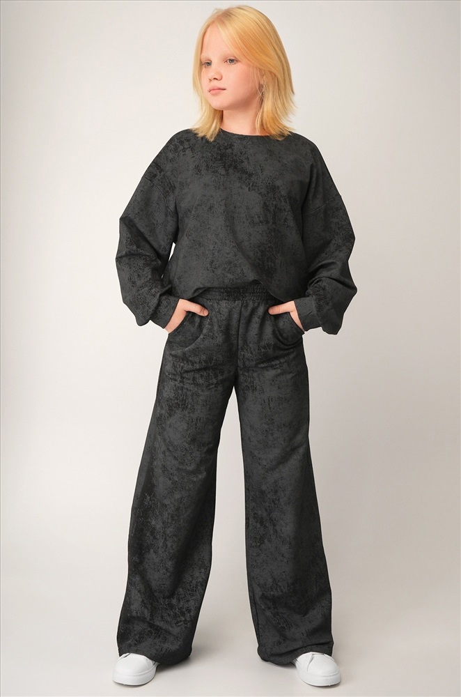 Детский костюм для девочки и девочки подростка с вареным эффектом — стиль без усилий. Глубокий тон и свободный силуэт создают выразительный повседневный образ, а плотный футер даёт ощущение уюта в прохладную погоду.