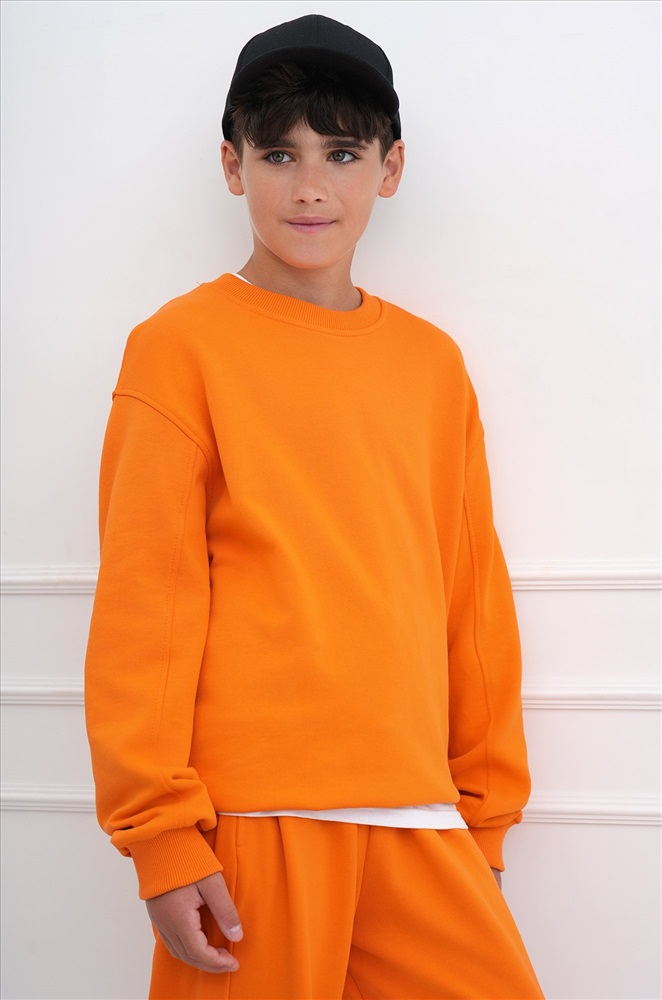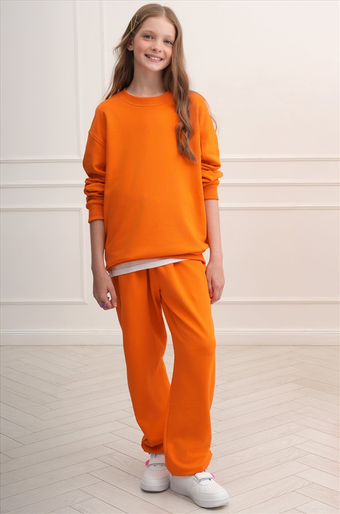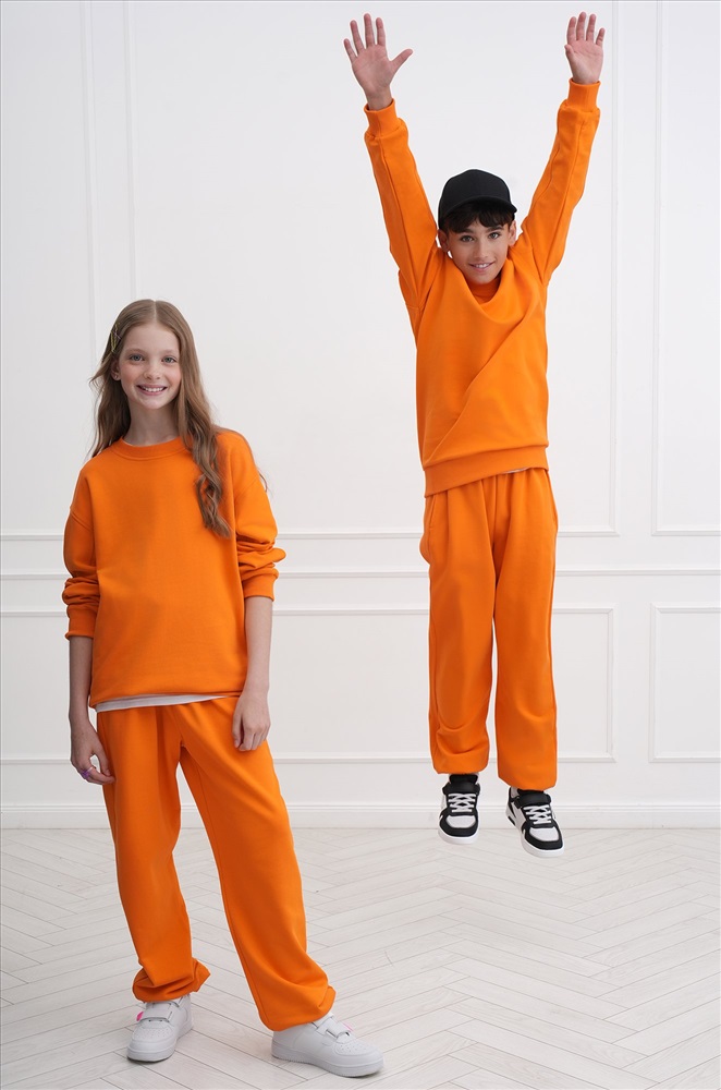 Демисезонный трикотажный костюм оверсайз для подростков пригодится на каждый день. Насыщенный оранжевый цвет и свободный крой делают его идеальным выбором для мальчика и для девочки.