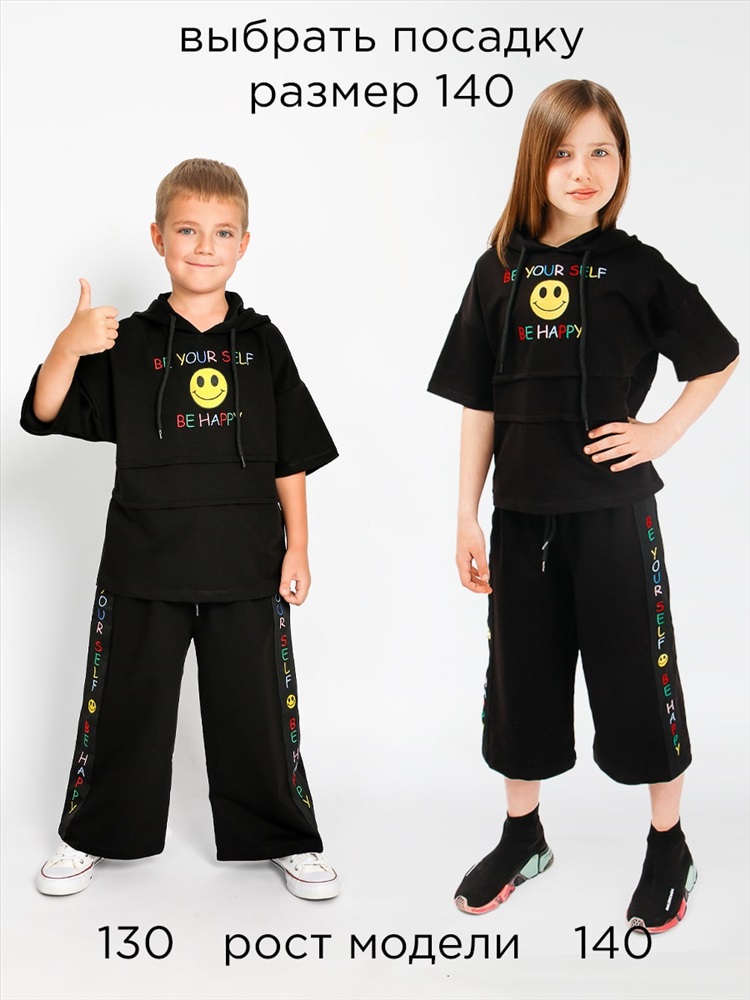 * Размер 140 (рост 134-140 см) длина футболки 52 см, ОГ 80 см; длина шорт 68 см, ОТ 66 см, ОБ 86 см.