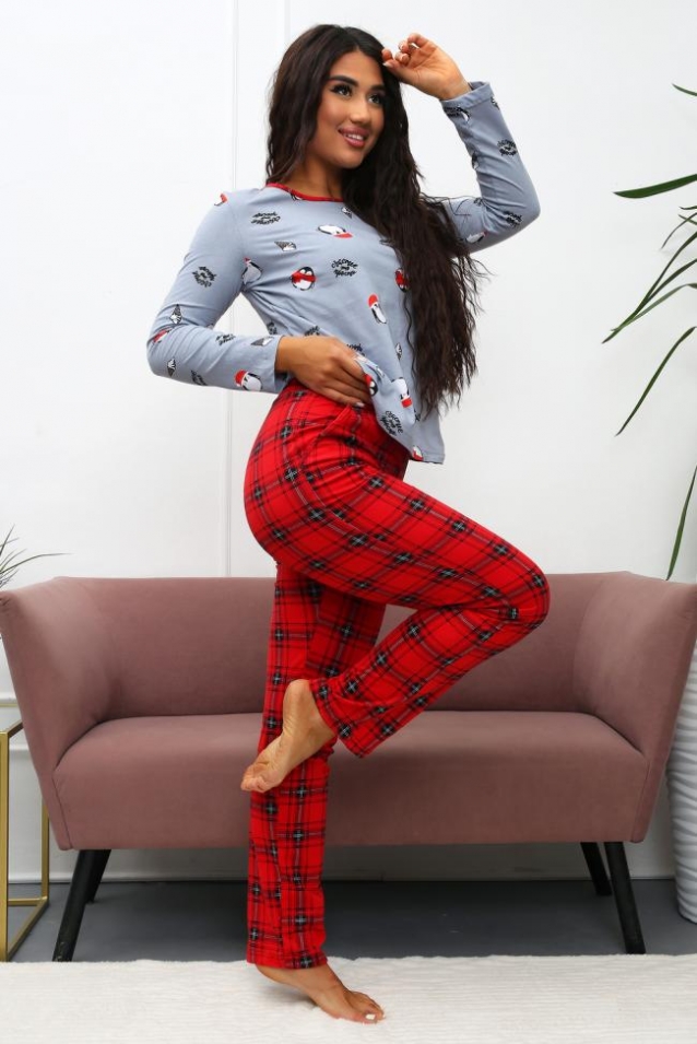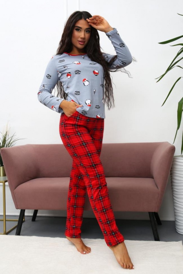 Костюм домашний КД004 Пингвин (Красный/серый)