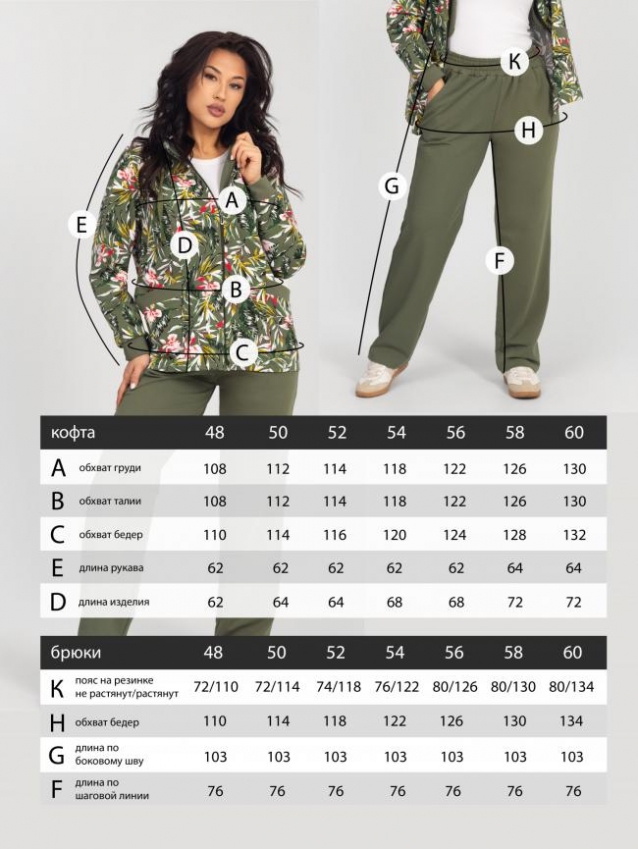 Ткань: Футер с лайкрой Состав: 80% хлопок, 15% пэ, 5% лайкра Размеры: 48, 50, 52, 54, 56, 58, 60