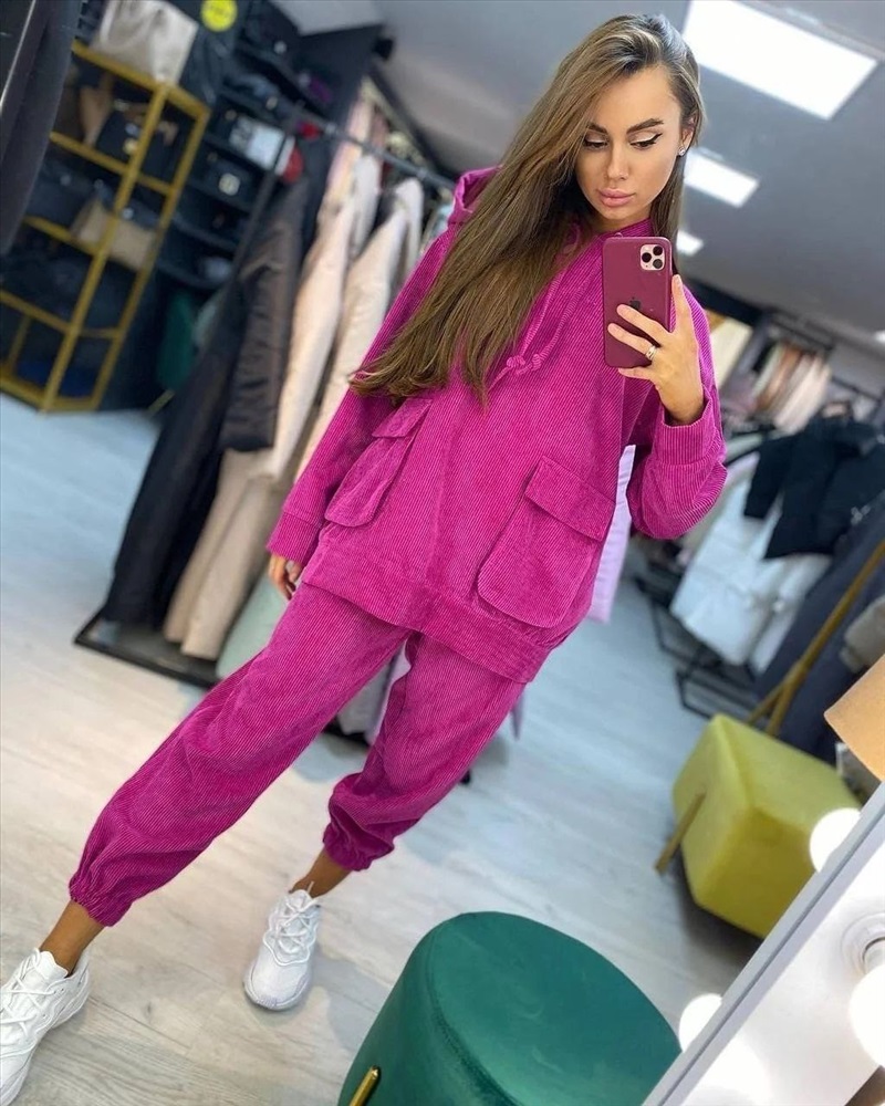 44 размер. Брюки ОТ 32-45см,ОБ 64см,ДЛ 102см. Кофта ОГ 56см, ДЛ 70см.