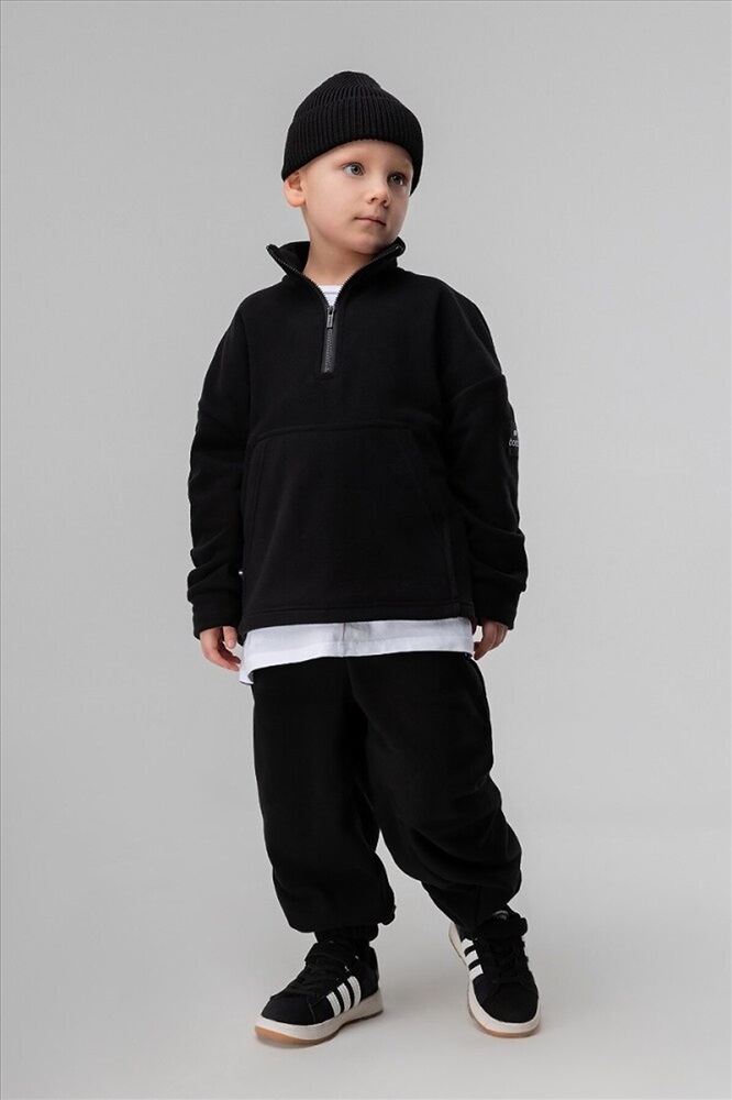 Костюм флисовый для детей дошкольного возраста. Толстовка без подкладки, прямого силуэта со спущенным плечом и втачными рукавами с притачной манжетой, воротник стойка, застёгивается на короткую молнию по центру полочки, на полочке расположен накладной карман — кенгуру. Брюки прямые свободные на притачном поясе с внутренней резинкой, на цельнокроеной манжете по низу изделия с внутренней резинкой, брюки без карманов. Состав: флис 100% полиэстер Внимание: в эти города продукция данного бренда не отгружается. Россия: Владивосток, Хабаровск, Махачкала. Казахстан: Павлодар, Семей, Кокшетау, Балхаш, Костанай, Усть-Каменогорск.