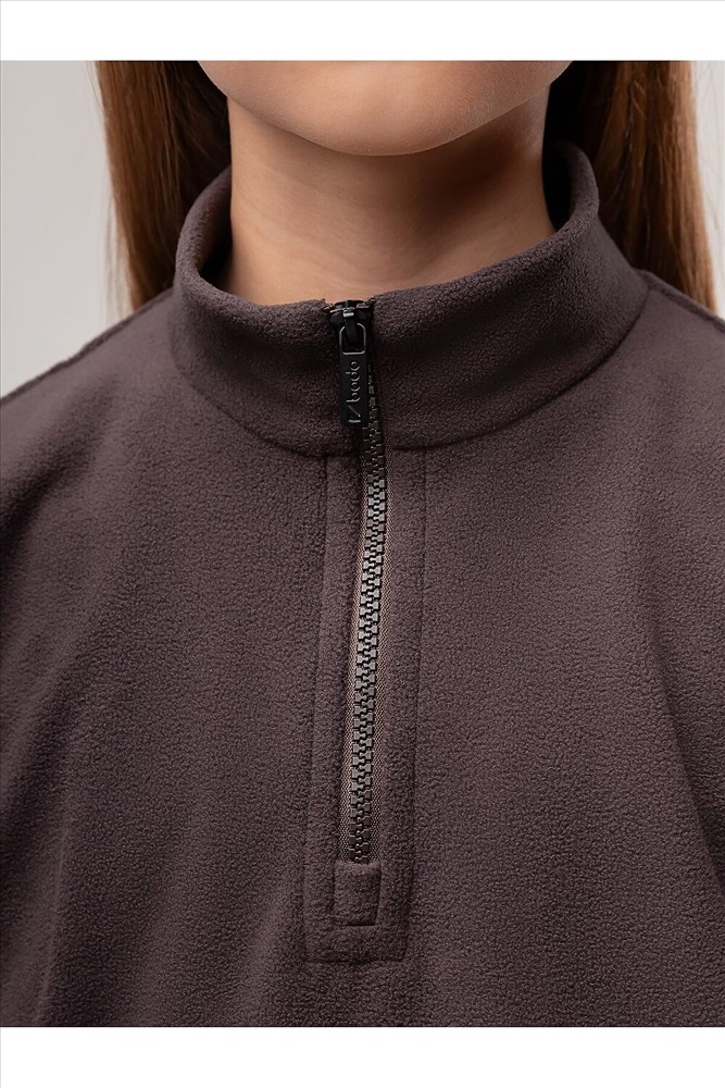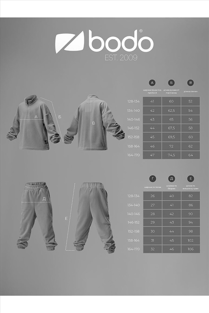 Костюм для детей школьного возраста. Толстовка без подкладки, прямого силуэта со спущенным плечом, втачными рукавами с цельнокроеной манжетой с резинкой внутри. Воротник стойка, застёгивается на короткую молнию по центру полочки. Низ изделия ровный.Брюки прямые свободные на притачном поясе с внутренней резинкой. Низ брюк с цельнокроеной манжетой на резинке. Брюки с боковыми карманами. Костюм выполнен из качественного флиса плотностью 190гр.