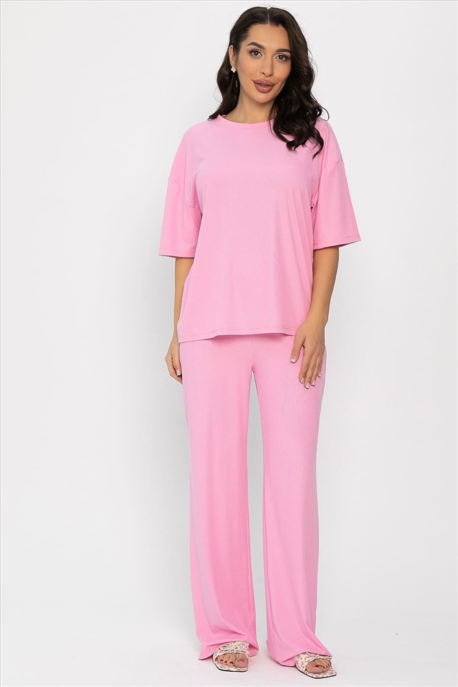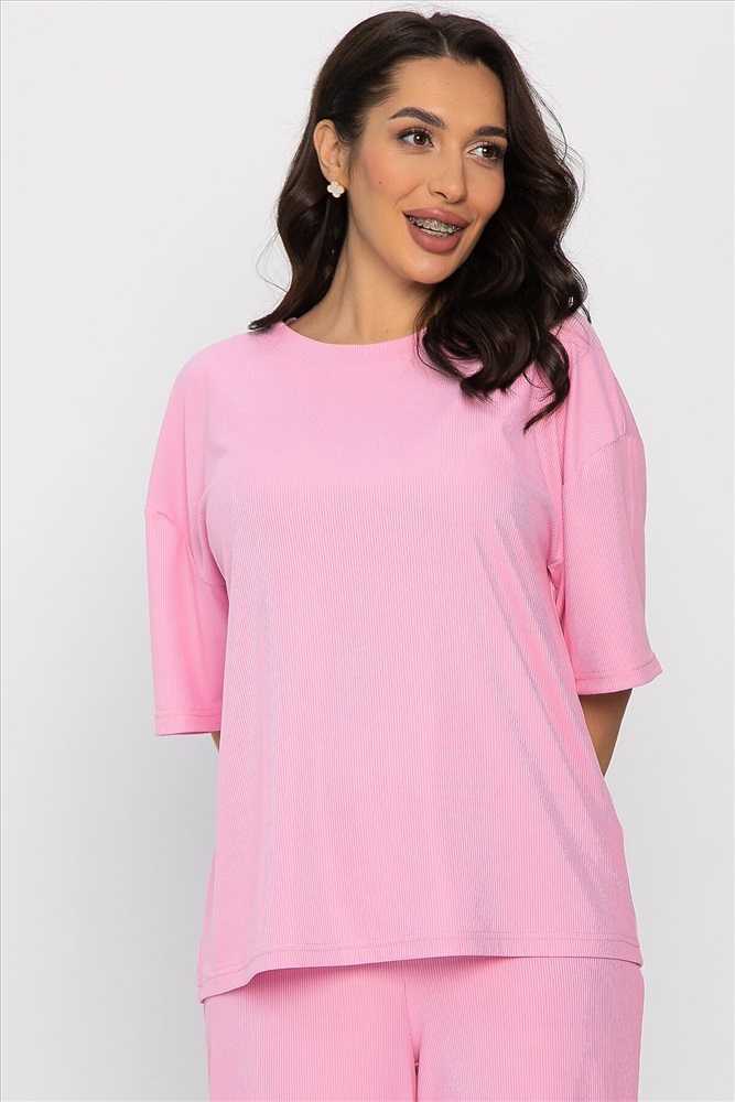 ID товара: 1205340 Состав: 65% Полиэстер, 30% Вискоза, 5% Эластан Сезон: Демисезон Длина: Полная Фасон: Свободный Рукав: короткие Крой брючин: Широкий Основная ткань: Полиэстер Страна бренда: Россия Страна производства: Россия Состав : 65% полиэстер, 30% вискоза, 5% эластан Материал : трикотаж "лапша" Цвет : розовый Принт : отсутствует Силуэт : свободный Карманы : отсутствуют Резинка в поясе : да Вид застежки : без застёжки Декоративные элементы : отсутствуют Женский домашний костюм из мягкого и приятного трикотажа сочетает в себе максимальный комфорт и стильный внешний вид. Идеально подойдет как домашний уютный вариант для сна или отдыха, а также станет вашим надежным спутником в повседневной жизни благодаря своей функциональности и удобству. Брюки по талии на резинке. Такой костюм станет незаменимым элементом вашего гардероба, позволяя вам чувствовать себя свободно и непринужденно каждый день. Внимание! Рекомендуем ориентироваться на размерную сетку и выбирать свой привычный размер, согласно размерной таблице. *Допуск отклонения длины при массовом производстве 1-3 см является нормой. Уход за изделием: Ручная стирка или стирка в машине при температуре до 30 °C, деликатный режим. Не использовать отбеливатели. Разрешена глажка при температуре до 110 °C. При глажке использовать специальную насадку на подошве утюга, гладить с паром. Не замачивать и не выжимать. Стирать изделие наизнанку, отдельно от других вещей. Комментарии к товару
