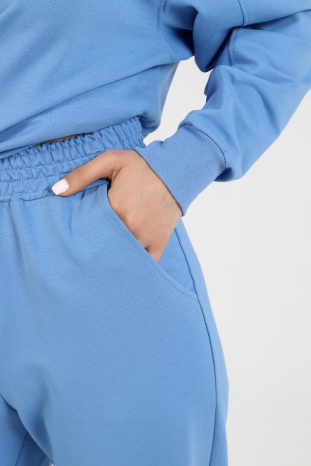 Расцветки: Голубой Ткань: Футер 2-х нитка с полиэстером Состав: 75% хлопок, 20% пэ, 5% лайкра Размеры: 44, 46, 48, 50, 52, 54