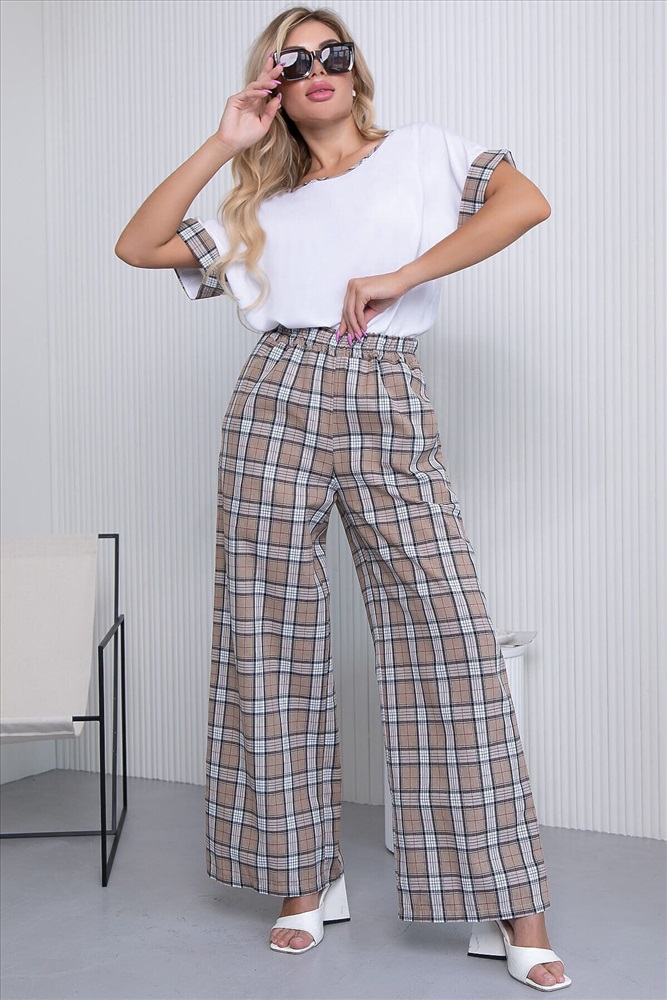 ID товара: 905909 Состав: блуза 100% Вискоза, брюки 100% Хлопок Сезон: Весна/Лето Длина: Полная Фасон: Свободный крой Рукав: короткие Крой брючин: Широкий Рисунок: Клетка Тип карманов: В шве Декоративные элементы: Принт Основная ткань: Вискоза Стиль: Повседневный Страна бренда: Россия Страна производства: Россия Артикул: К7066. Ткань: штапель, брюки - хлопок. Состав: 100% вискоза, брюки - 100% хлопок. Цвет: бежевый, белый. Принт: клетка. Вид застежки: без застёжки. Силуэт: прямой. Карманы: отсутствуют. Тип горловины: округлый. Длина изделия блуза по спинке: 44-46/ 69 см, 48-50/ 70 см. Длина брюк с учётом резинки: 44/ 101 см, 46-50/ 103 см. Рост модели: 168 см. Элегантный костюм, состоящий из брюк с высокой посадкой на резинке и блузы свободного кроя. Очень женственный комплект с базовым клетчатым принтом. Блуза свободного кроя с вырезами по низу в боковых швах, округлый вырез горловины, рукав укороченный, на манжете. Костюм из красивой гладкой ткани с привлекательным блеском остается в фаворитах уже много лет. Благодаря расцветке и фасону костюм прекрасно подойдёт для создания вечернего образа. Уход за изделием: бережная стирка до 30 градусов; нельзя отбеливать; деликатный отжим; гладить при t не более 110 С; гладить с изнанки. *Допуск отклонения длины при массовом производстве 1-3 см является нормой. Комментарии к товару