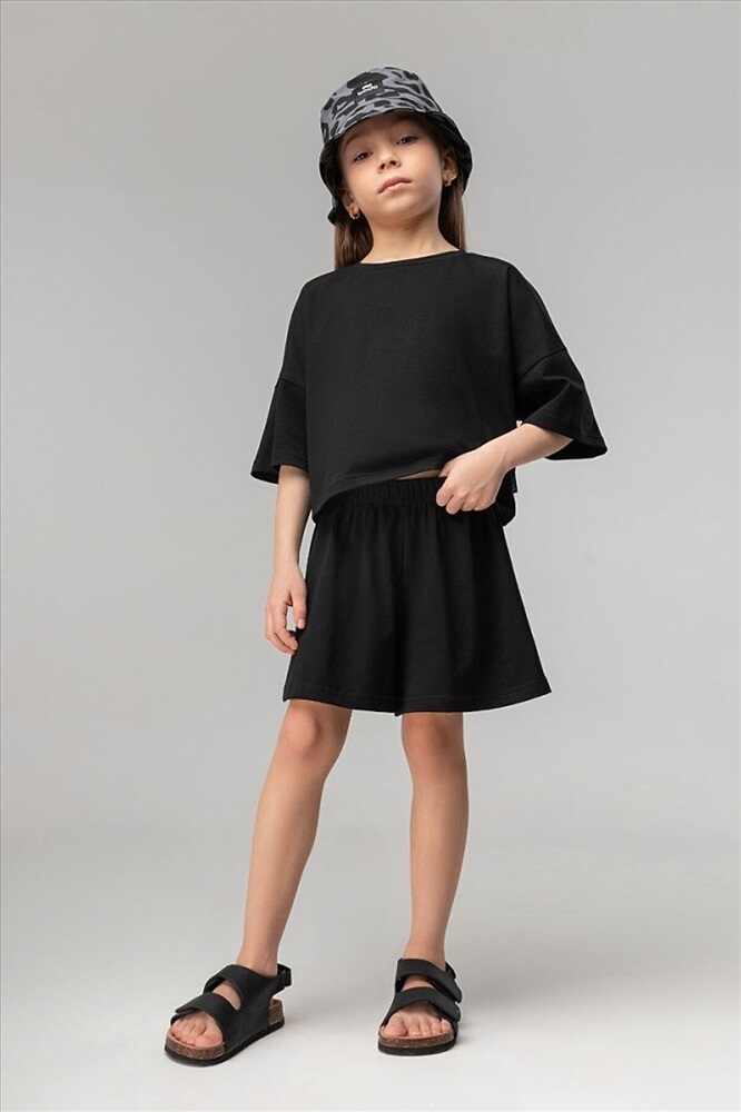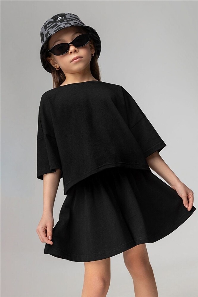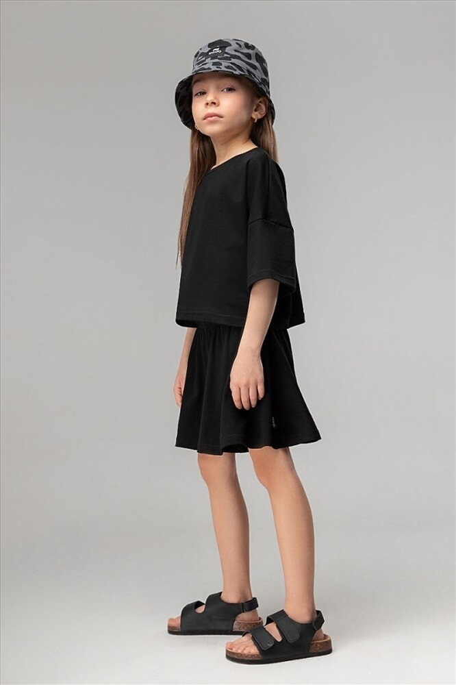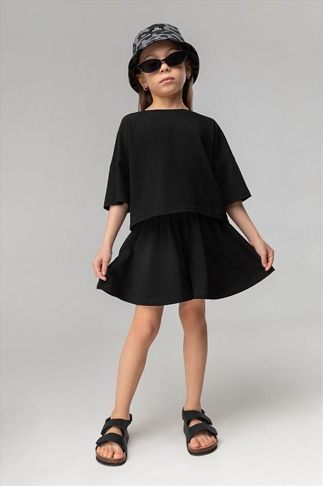 Костюм для детей дошкольного возраста. Футболка укороченная свободного силуэта со спущенным плечом с втачным коротким рукавом. Горловина футболки округлой формы, обработана рибаной. Шорты-юбка для детей дошкольного возраста. Шорты свободные на притачном поясе с внутренней резинкой, с боковыми карманами. Внимание: в эти города продукция данного бренда не отгружается. Россия: Владивосток, Хабаровск, Махачкала. Казахстан: Павлодар, Семей, Кокшетау, Балхаш, Костанай, Усть-Каменогорск.