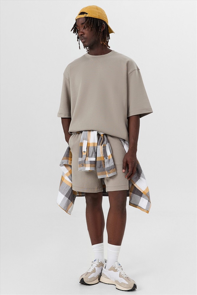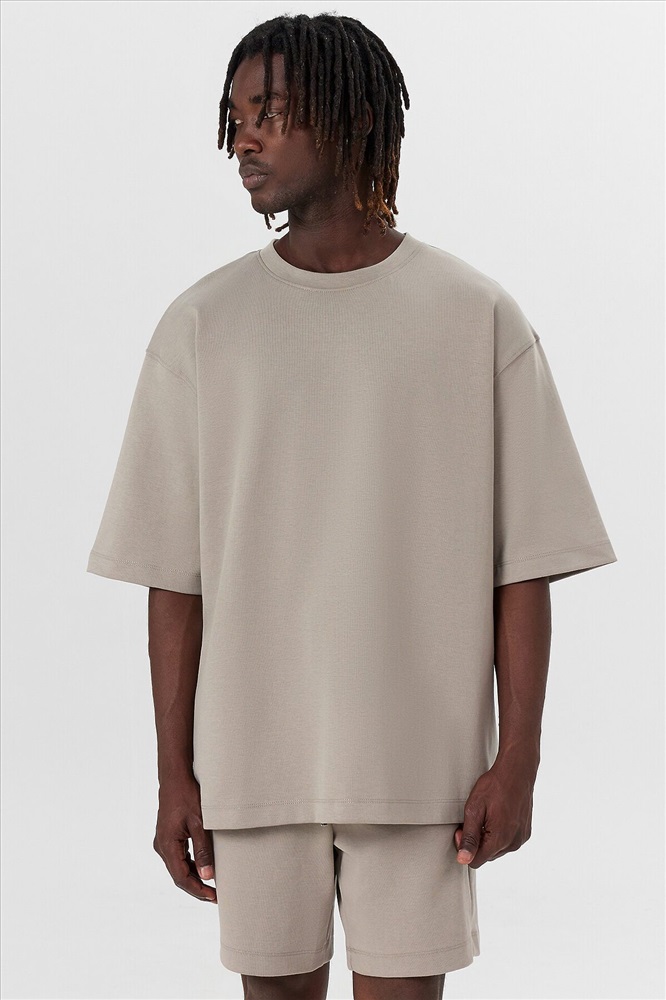 Мужской комплект станет отличным выбором для комфортного и стильного повседневного образа. Футболка прямого свободного кроя с круглой горловиной и слегка спущенной линией плеча добавляет расслабленный вид. Короткие рукава и обработка нижних срезов швом вподгибку обеспечивают аккуратный и завершенный вид. Шорты прямого свободного кроя длиной до колен создают удобство в движении, а эластичный пояс на кулиске позволяет подогнать посадку под индивидуальные предпочтения. Боковые карманы добавляют практичности и удобства. Изделие выполнено из интерлока — двойного трикотажа, известного своей прочностью, мягкостью и приятной текстурой. Он обладает высокой воздухопроницаемостью, эластичностью и долго сохраняет форму, не растягиваясь и не деформируясь. Этот материал обеспечивает комфорт в течение всего дня и идеально подходит для одежды, которая требует легкости и долговечности. Такой комплект идеально подходит для отдыха дома, прогулок или занятий спортом, сочетая функциональность и стиль. Комфортный и универсальный выбор для любого дня.