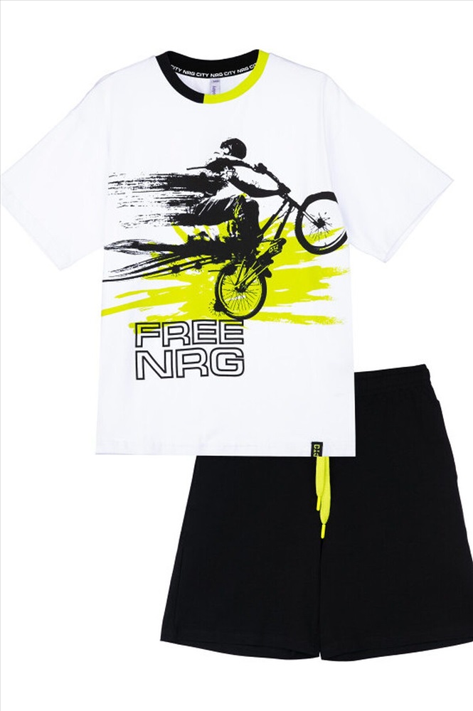 ID товара: 957511 Состав: 95% Хлопок, 5% Полиэстер Сезон: Весна/Лето Длина: Средняя Фасон: Прямой Рукав: короткие Вид застежки: Шнурок Крой брючин: Прямой Рисунок: Фантазийный Декоративные элементы: Принт Основная ткань: Хлопок Стиль: повседневный Страна бренда: Германия Страна производства: Россия Комплект: футболка, шорты из качественного и приятного на ощупь трикотажа джерси. Высокое содержание хлопка 95%. Благодаря наличию эластана в составе ткани изделие проще в уходе и держит форму. Regular fit. Эластичный пояс со шнурком. Функциональные карманы. Комментарии к товару