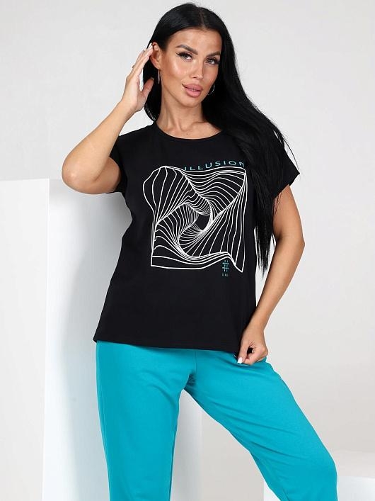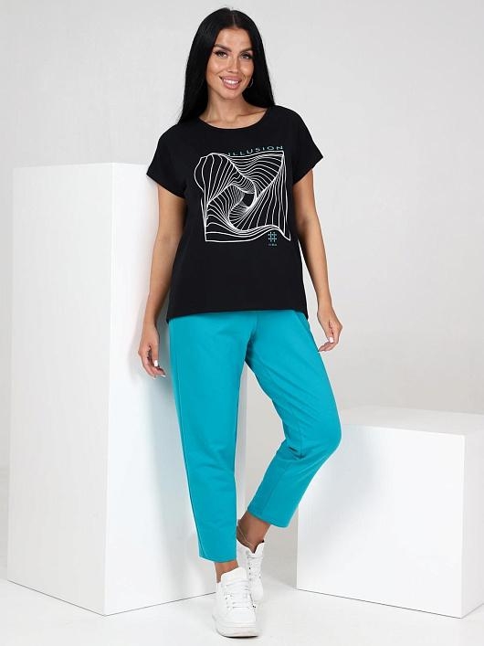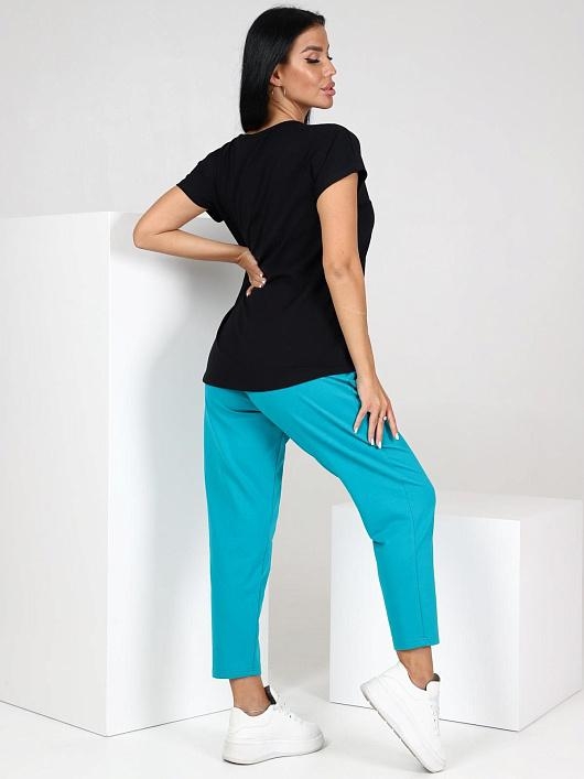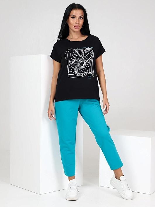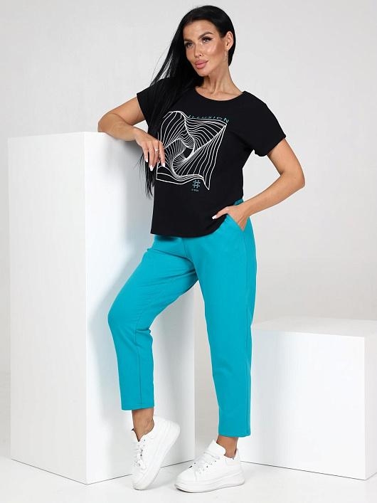 Футболка - кулирка с лайкрой (хлопок 95%; лайкра 5%). брюки - футер двунитка (хлопок 75%; полиэстер 20%; лайкра 5%)