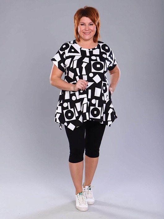 Расцветки: Черный Ткань: Кулирка, вискоза Состав: Туника - хлопок 100%; легинсы - вискоза 95%, лайкра 5% Размеры: 46, 48, 50