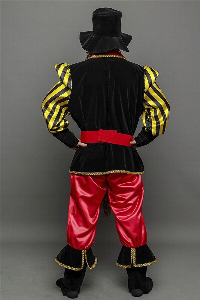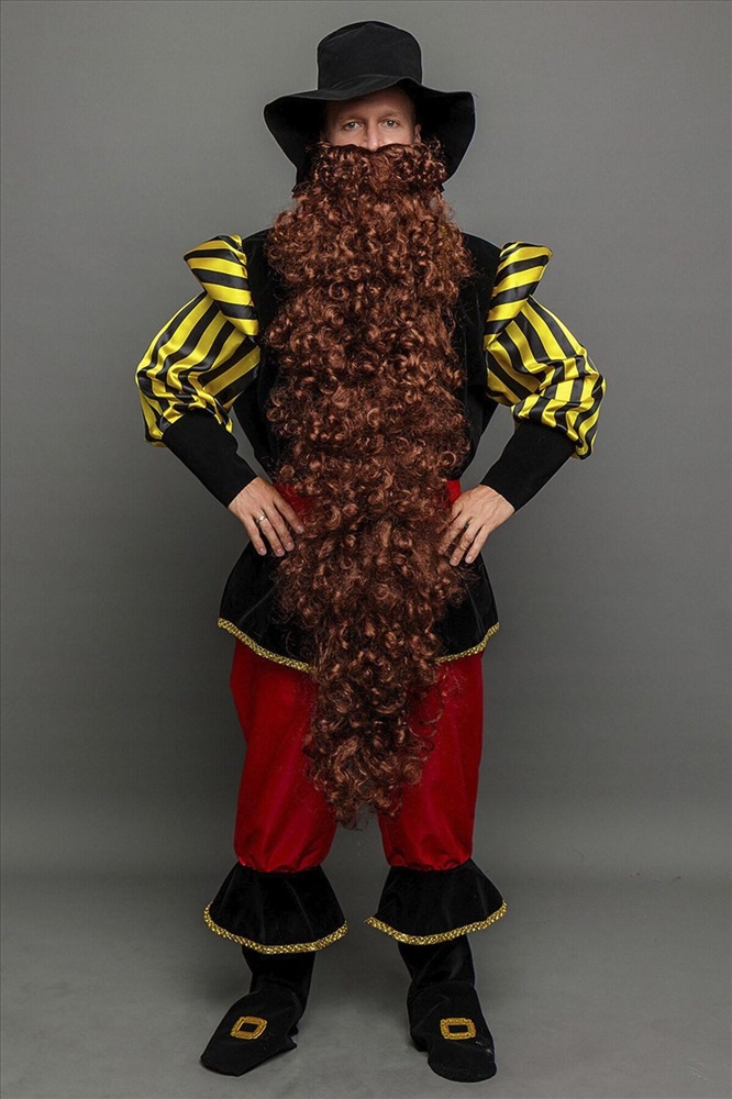 ID товара: 1204118 Сезон: Демисезон Длина: Полная Фасон: Полуприлегающий Рукав: Длинные Страна бренда: Россия Страна производства: Россия Костюм Карабаса Барабаса взрослый на 56 размер (рост 182). В комплекте камзол, брюки, сапоги, пояс, шляпа, борода. Рубашка с полосатым принтом, сапоги с пряжками, черная шляпа, длинная коричневая борода на резинке. Характеристики: